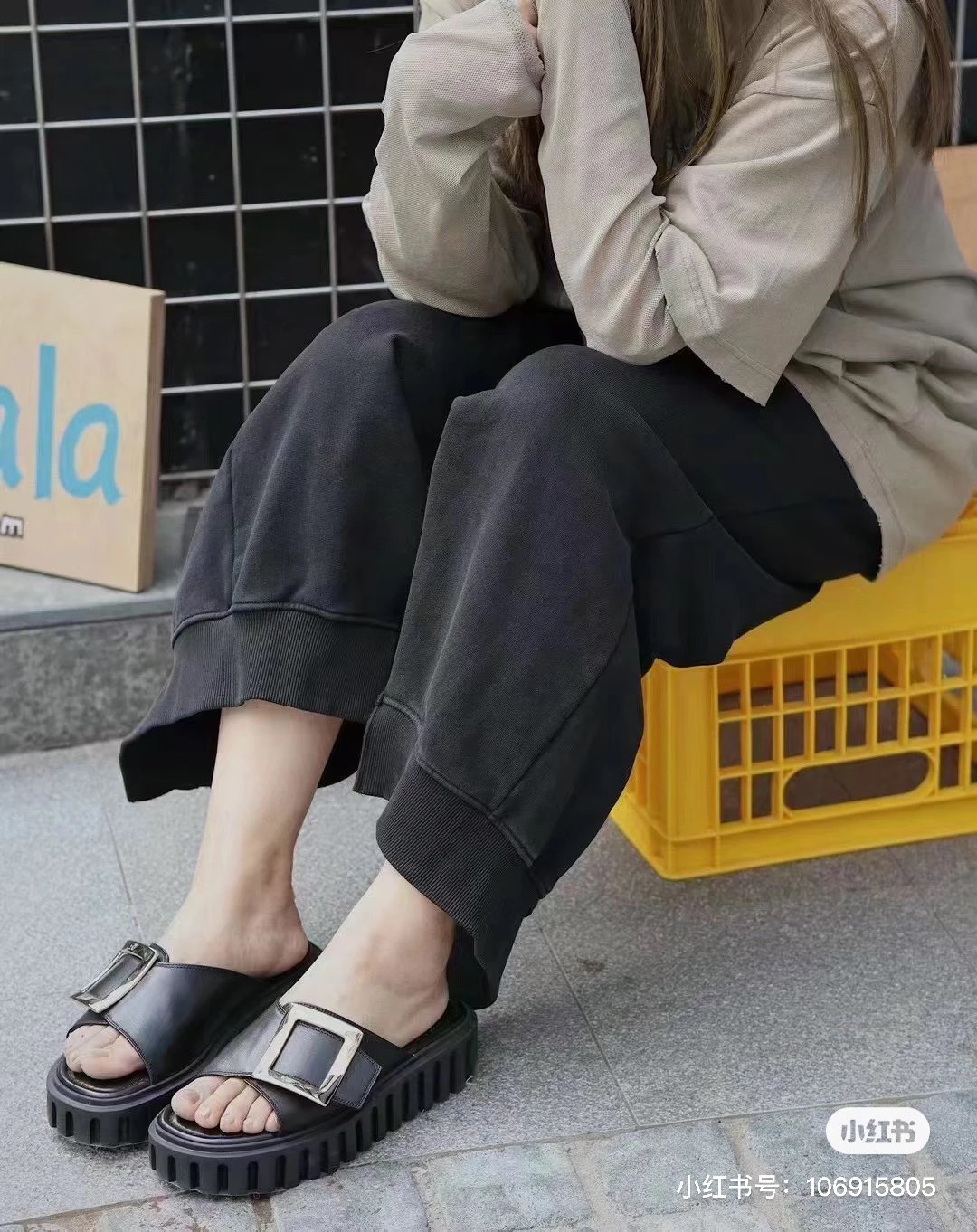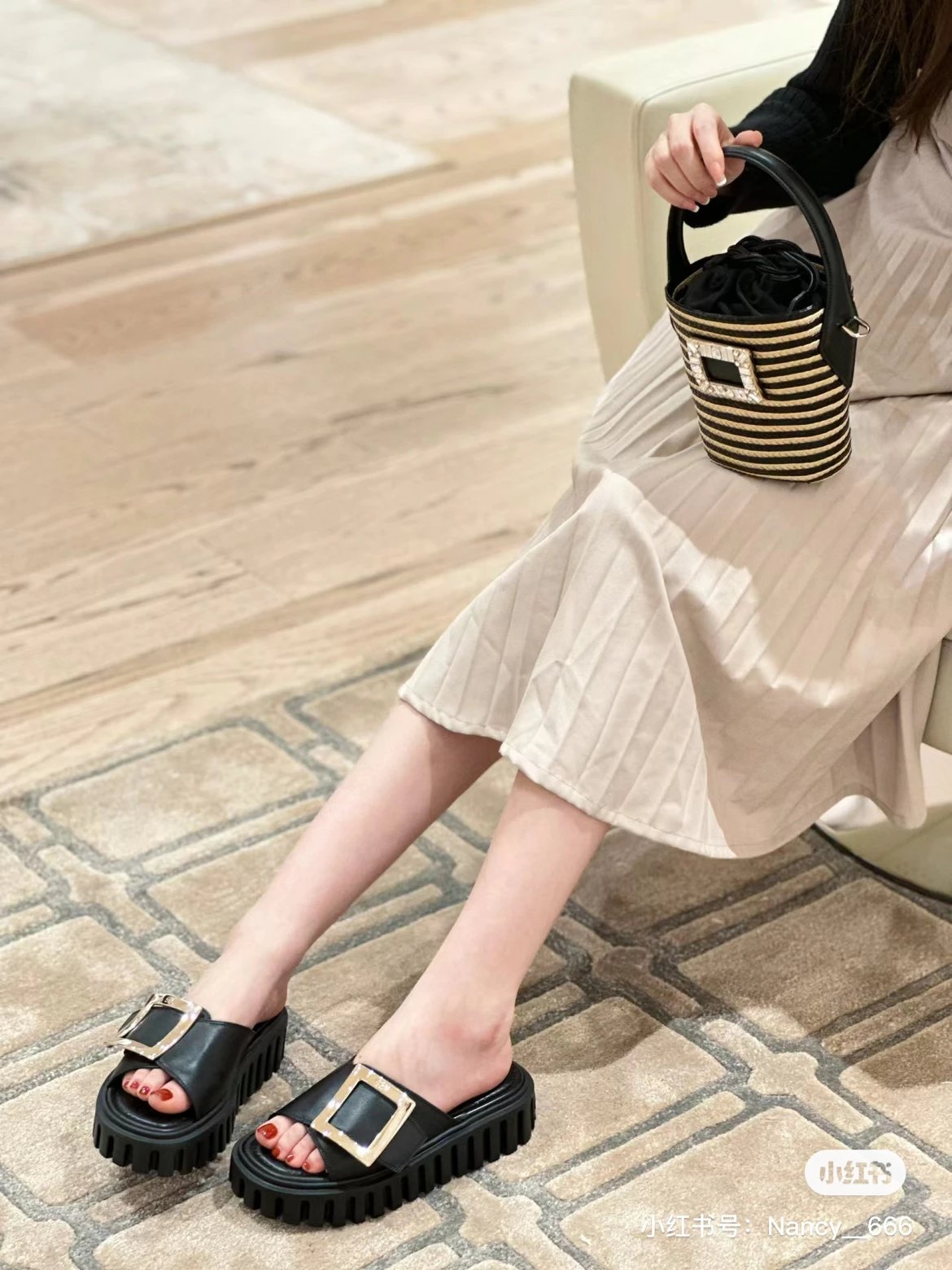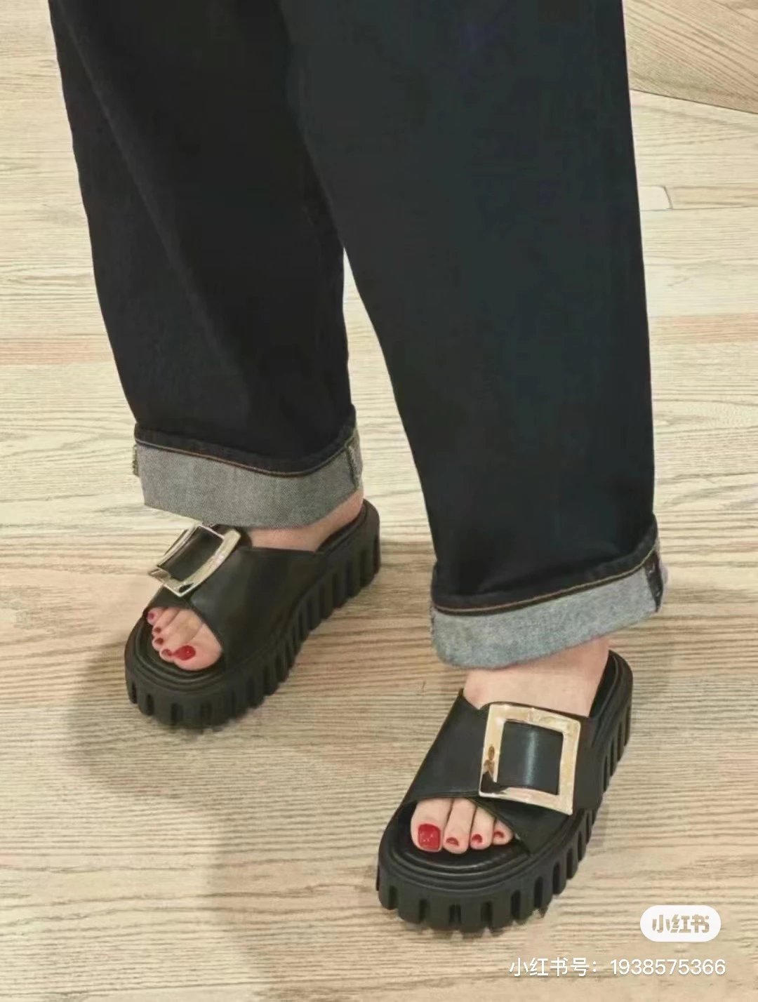 辛芷蕾同款 RV金属方扣拖鞋 超轻厚底凉拖 暴走无压力