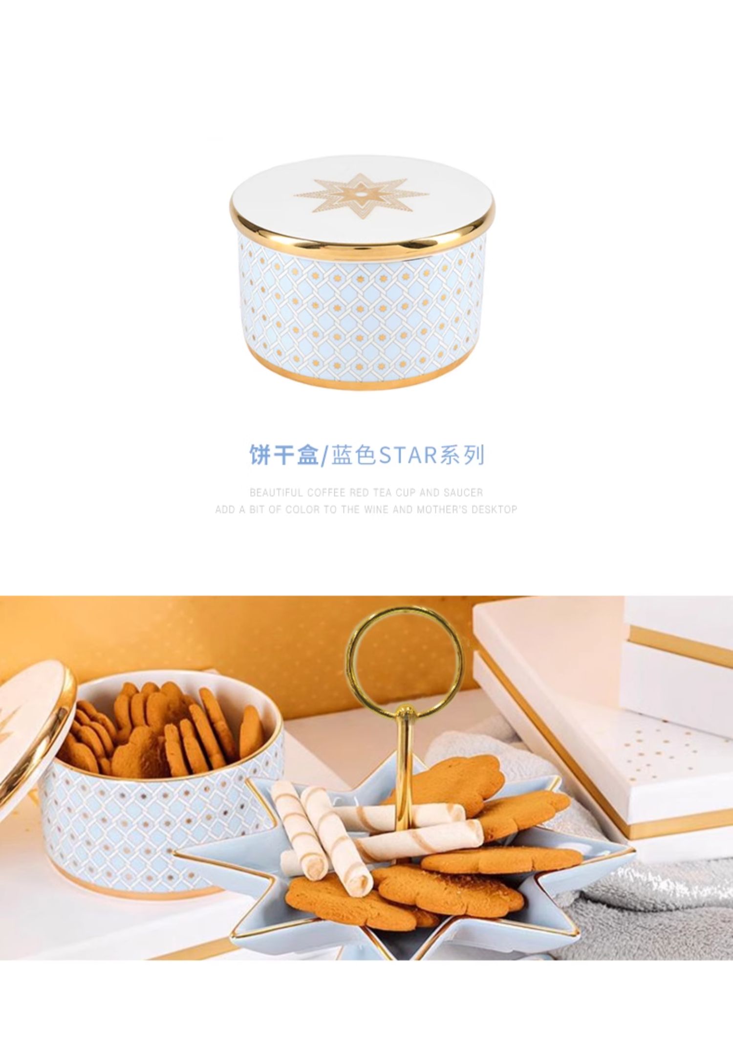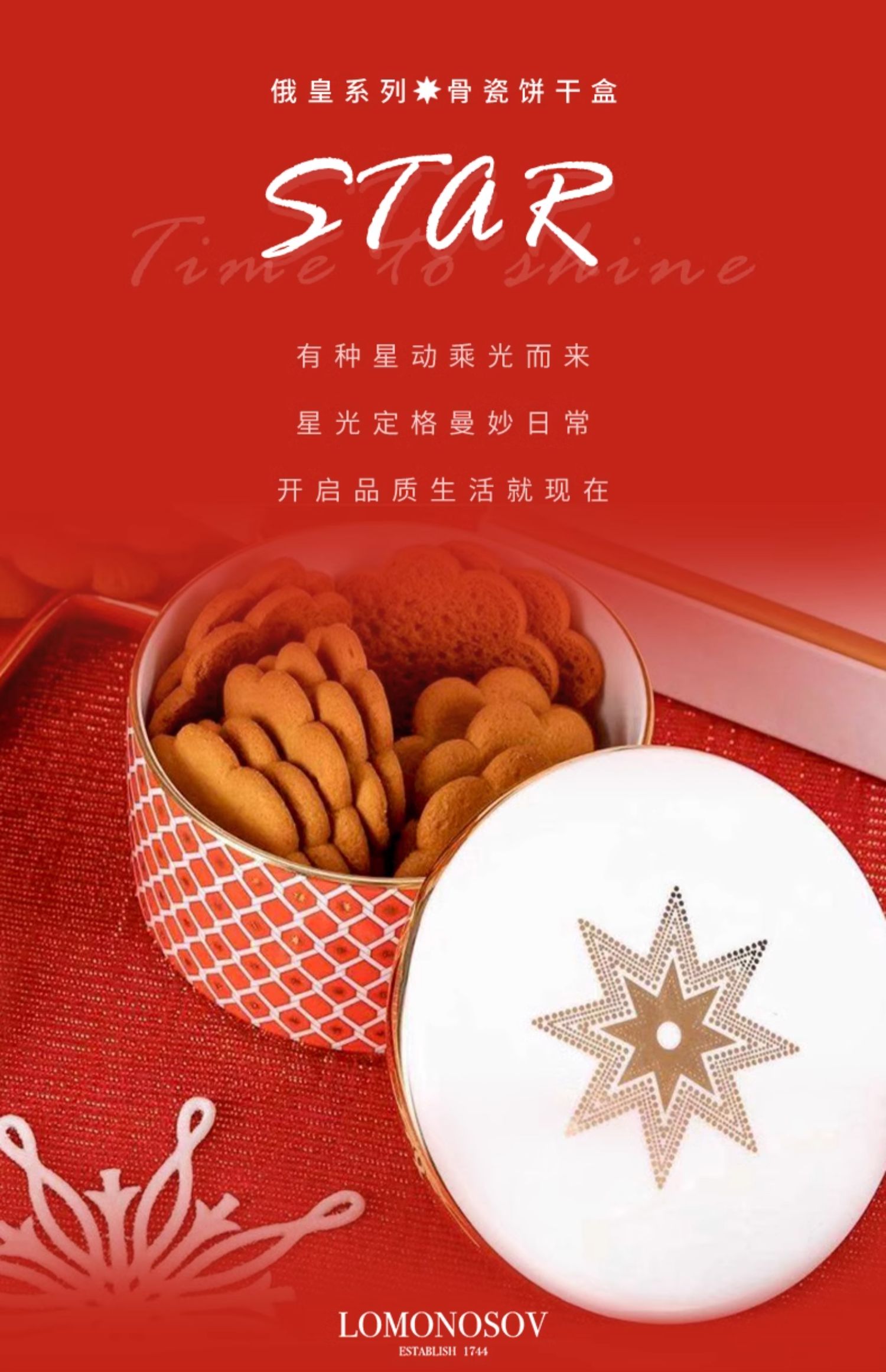俄皇LOMONOSOV饼干盒STAR系列欧式金边骨瓷轻奢客厅家用点心盒子