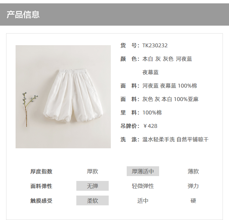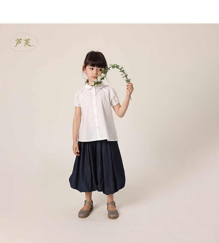 【马克珍妮 芦芙】春装新款 女童休闲花苞型八分裤230232