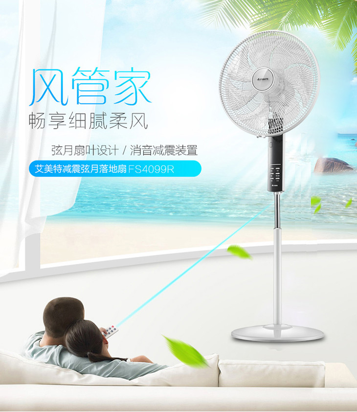 艾美特(Airmate)(507899) 家用电风扇7叶柔风遥控落地扇预约定时 FS4099R