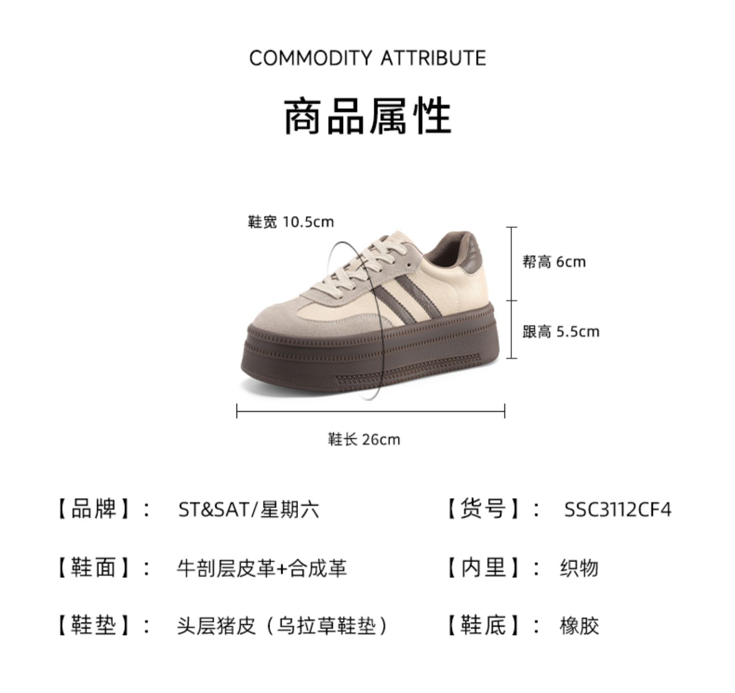 【绒里可选】星期六学院风百搭厚底德训鞋SSC3112CF4/SSC411DCRI