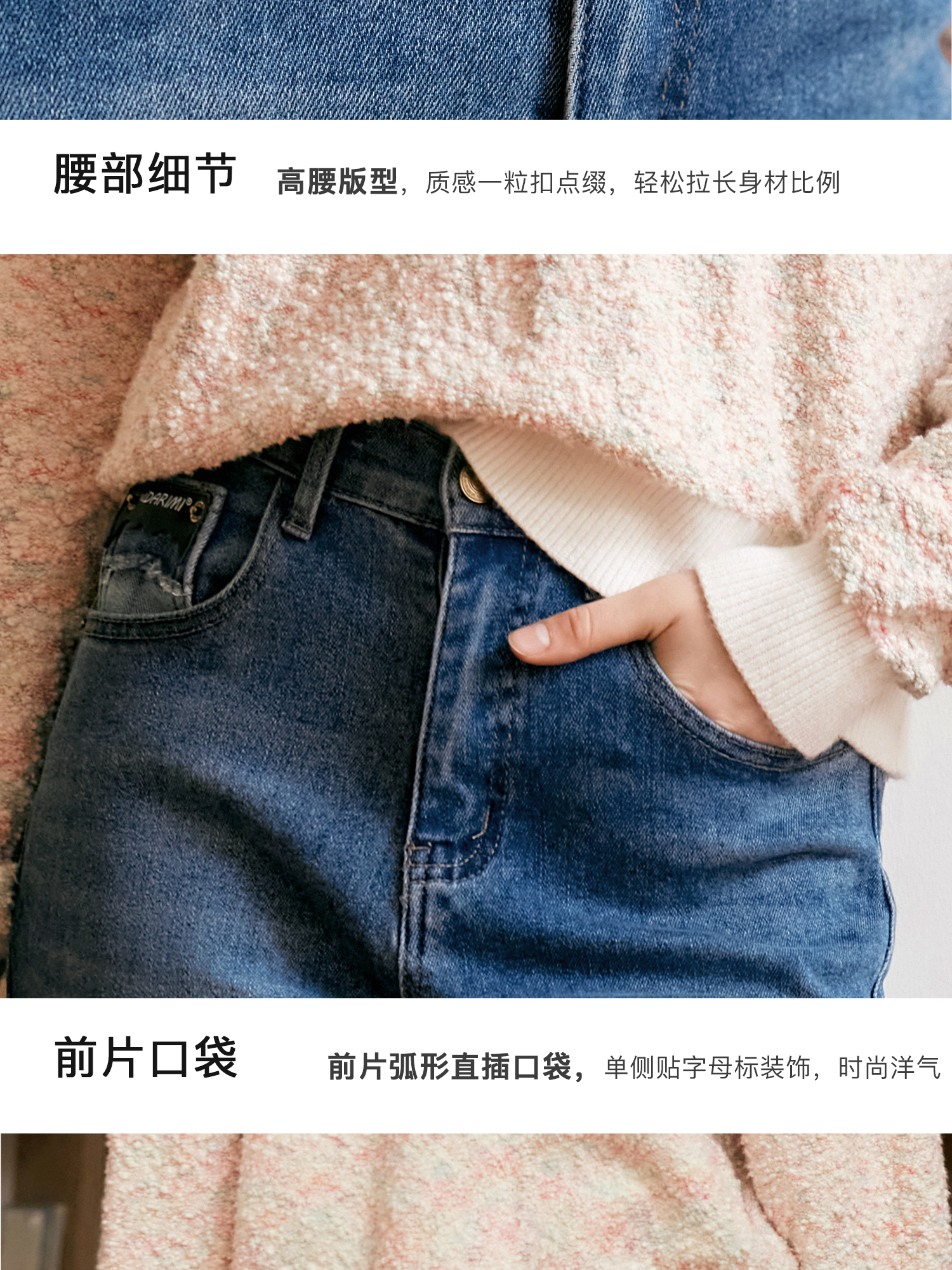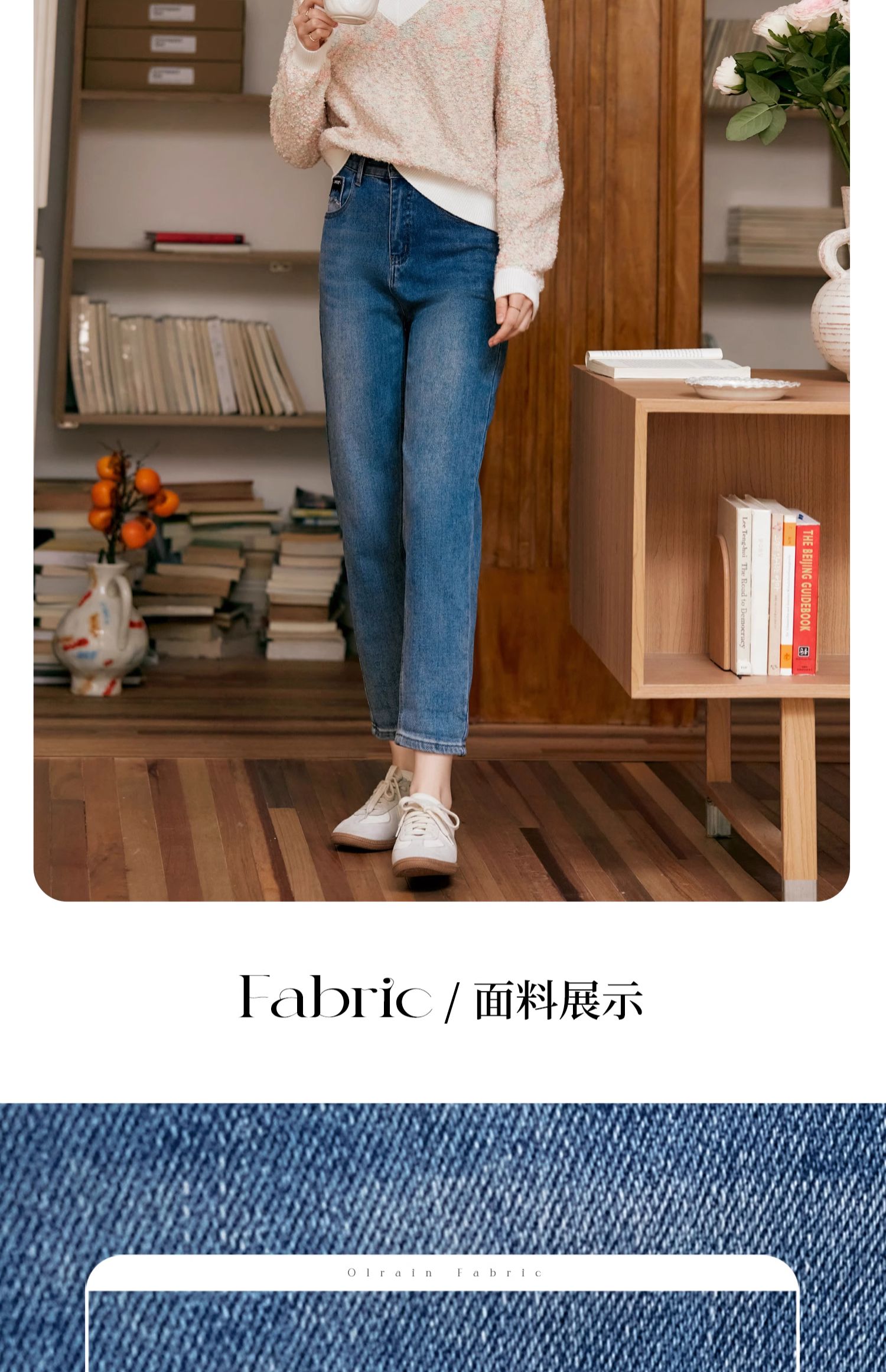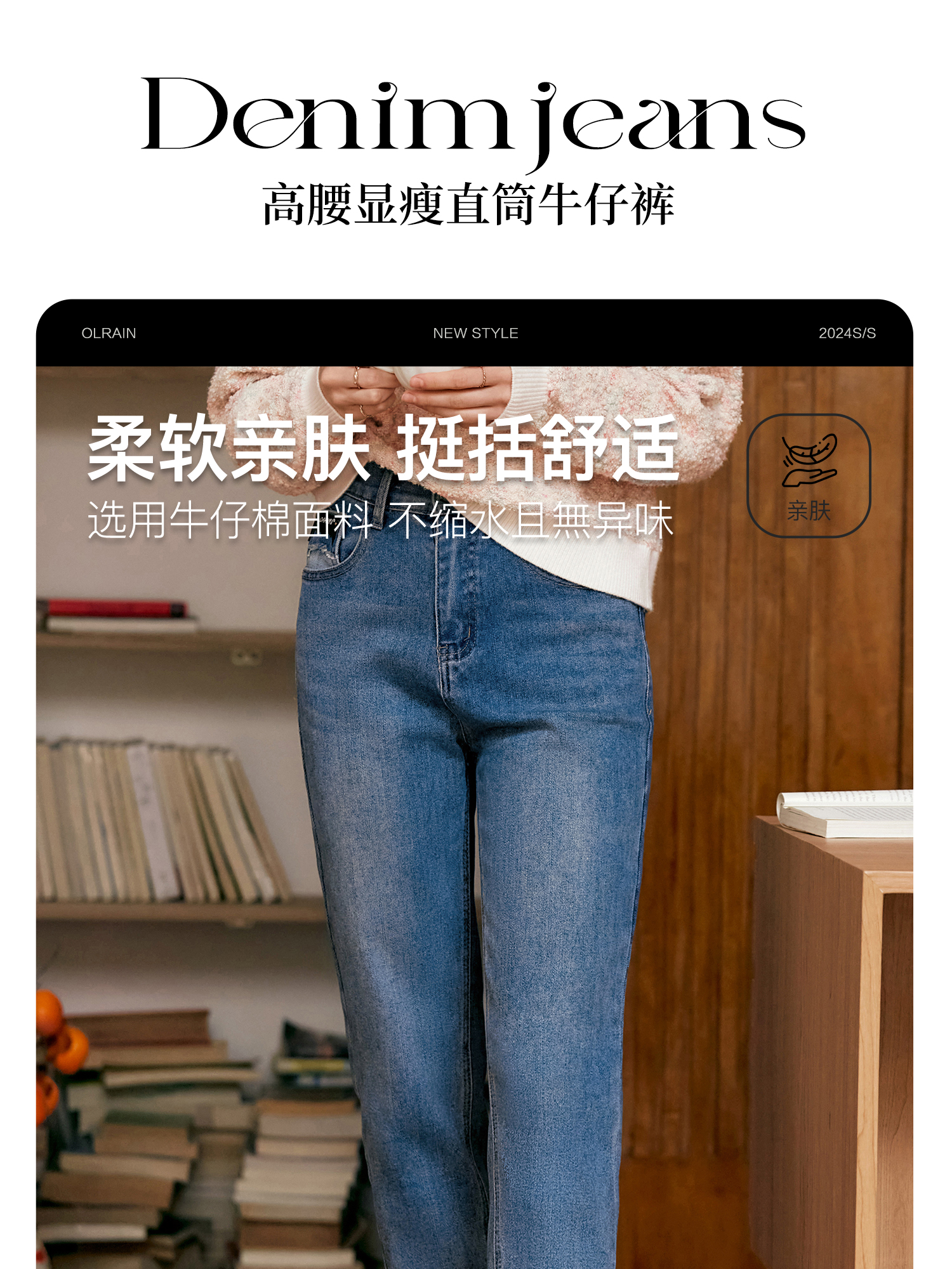 OLrain欧芮儿蓝色高腰牛仔裤女秋季2024新款显瘦直筒通勤百搭长裤