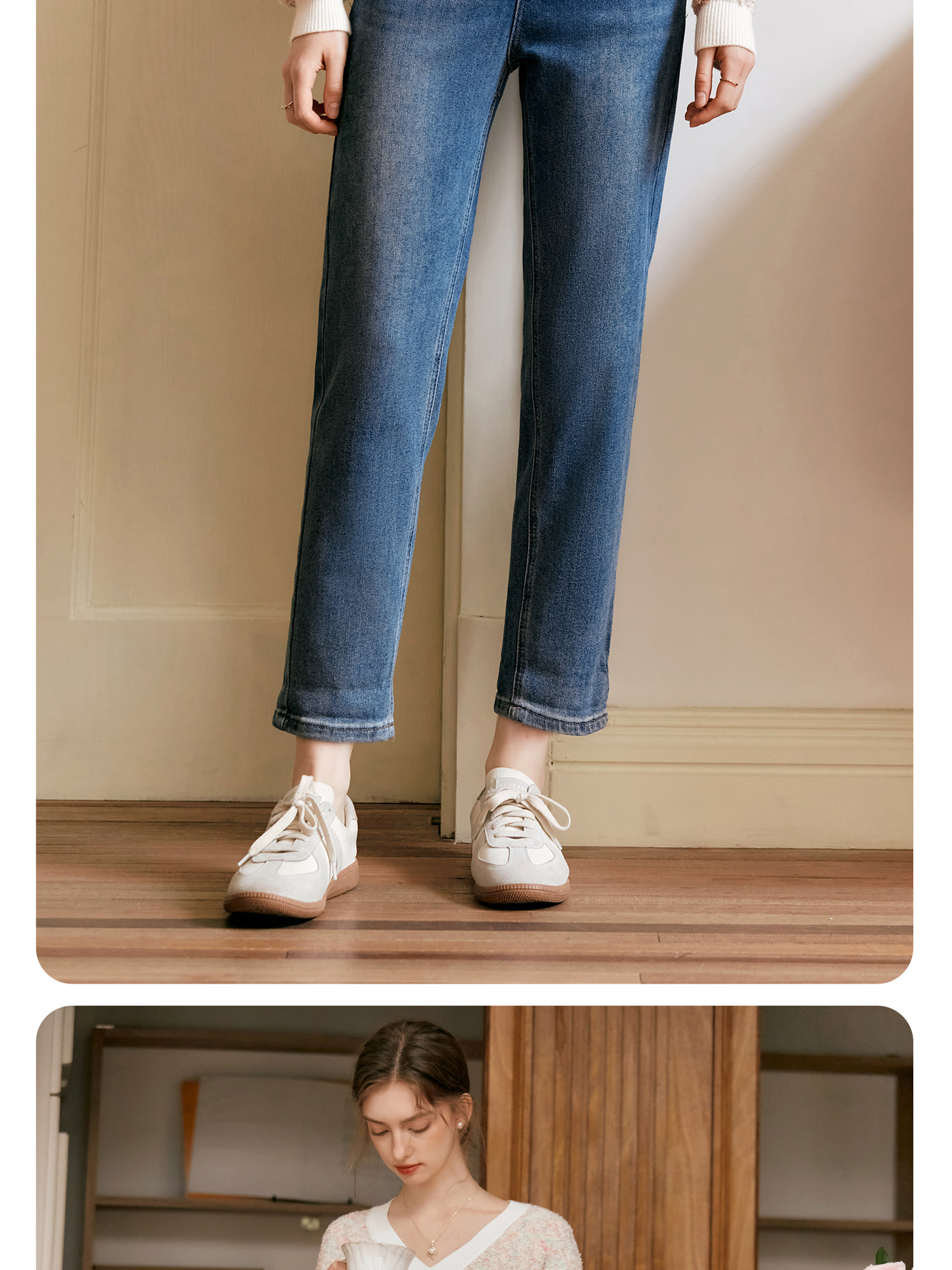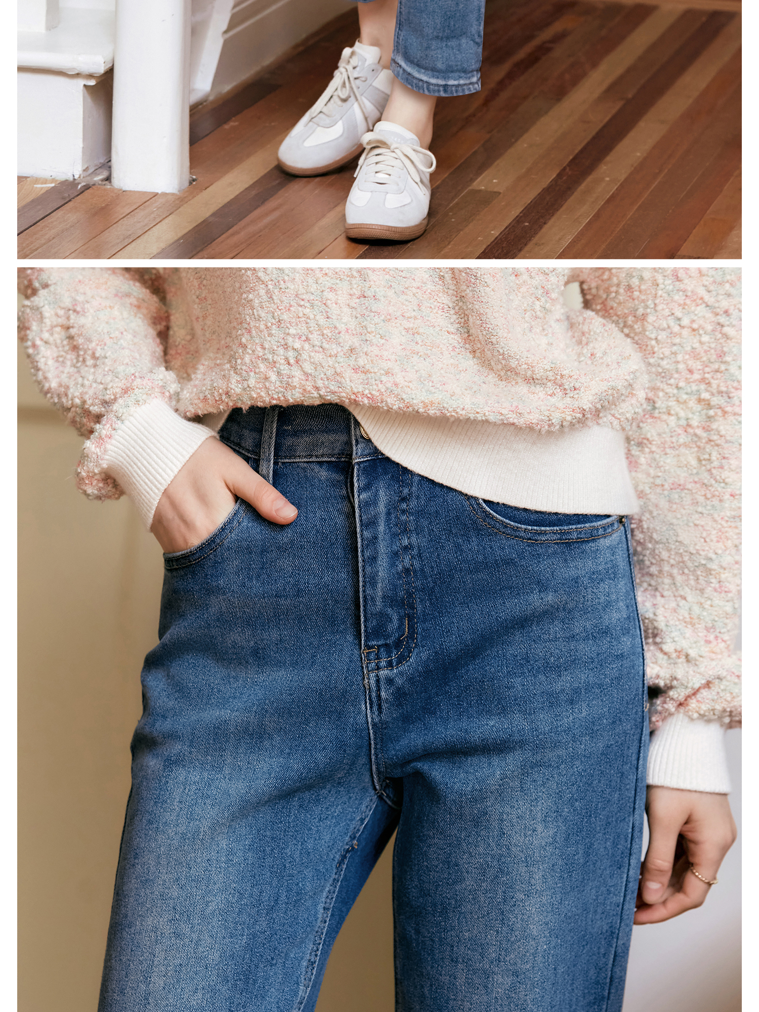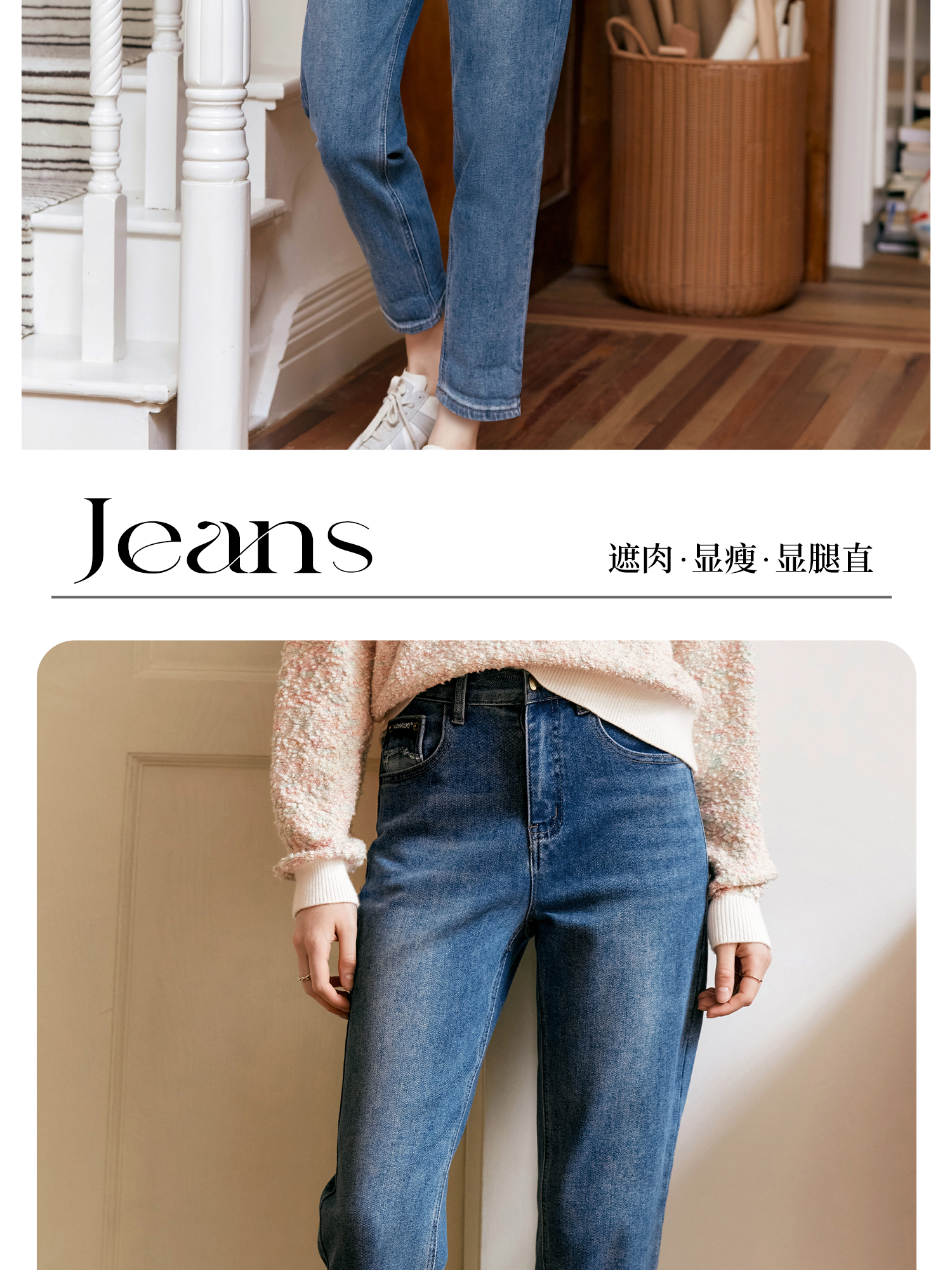 OLrain欧芮儿蓝色高腰牛仔裤女秋季2024新款显瘦直筒通勤百搭长裤