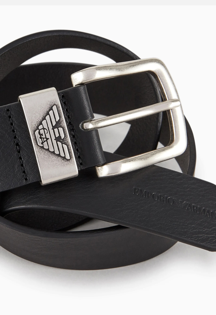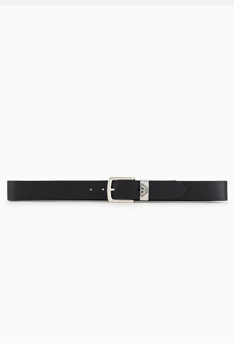 EMPORIO ARMANI 阿玛尼 男士带徽标扣的皮革腰带 黑色 Y4S201 YDD6G 80001