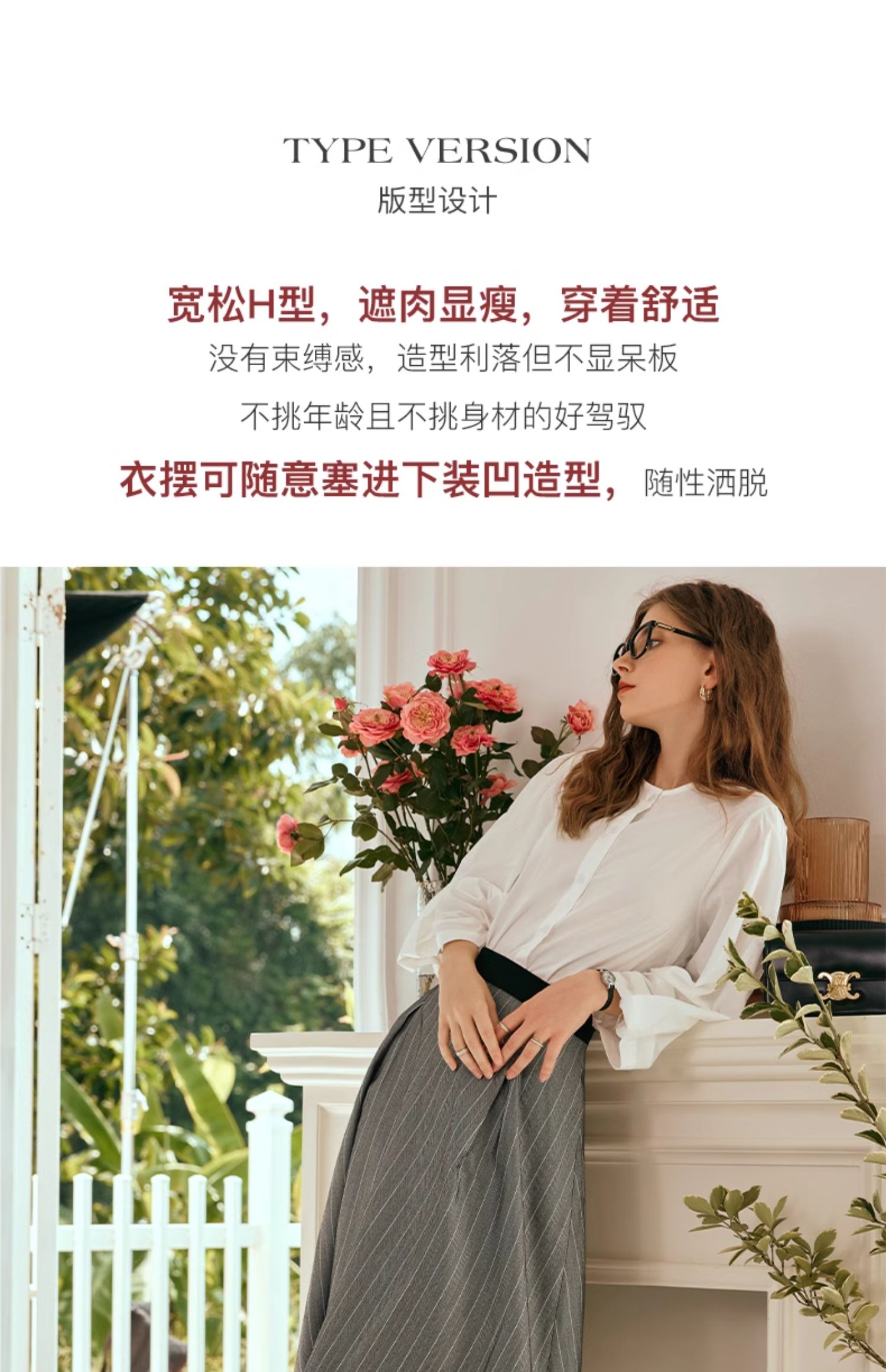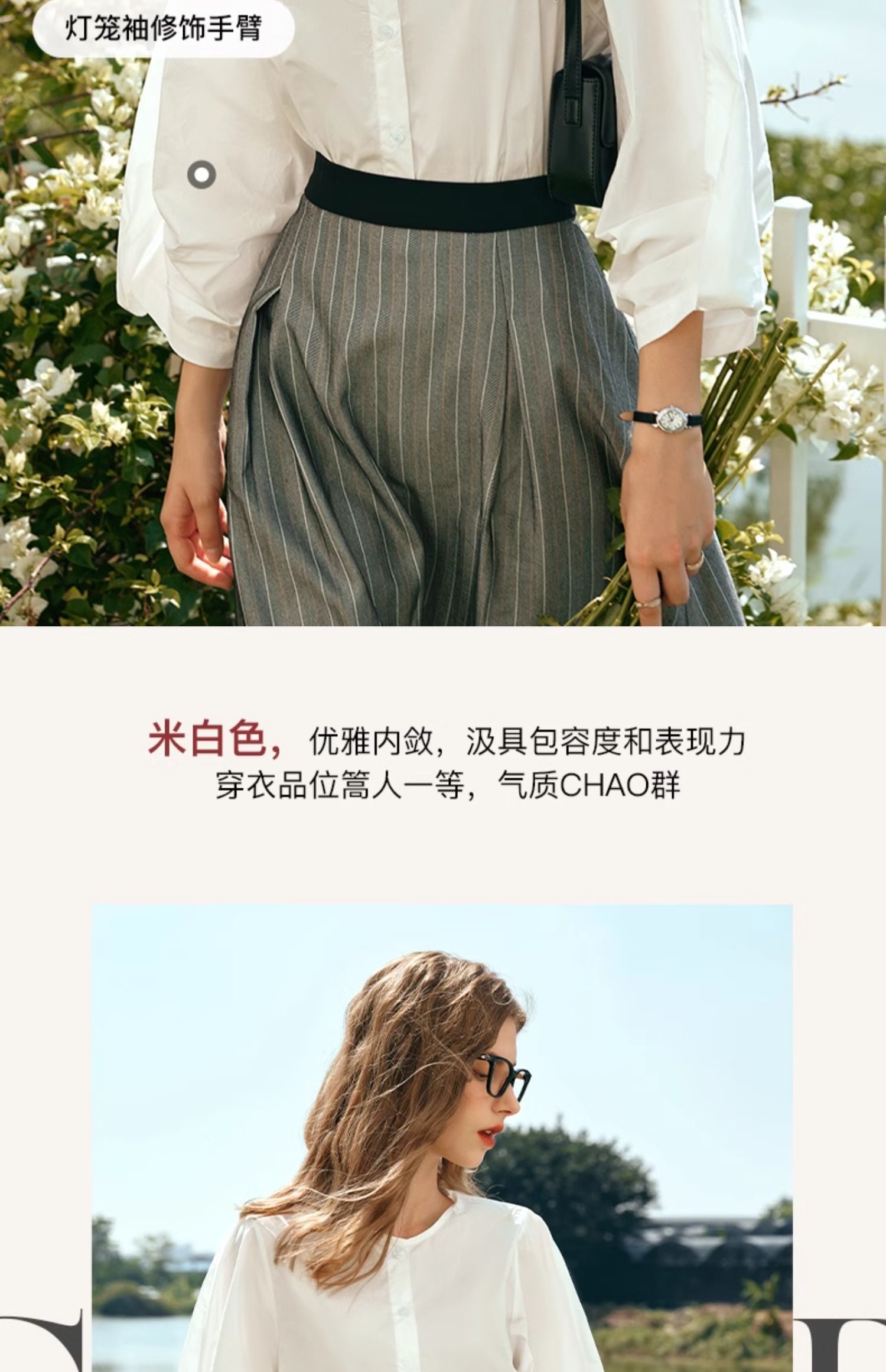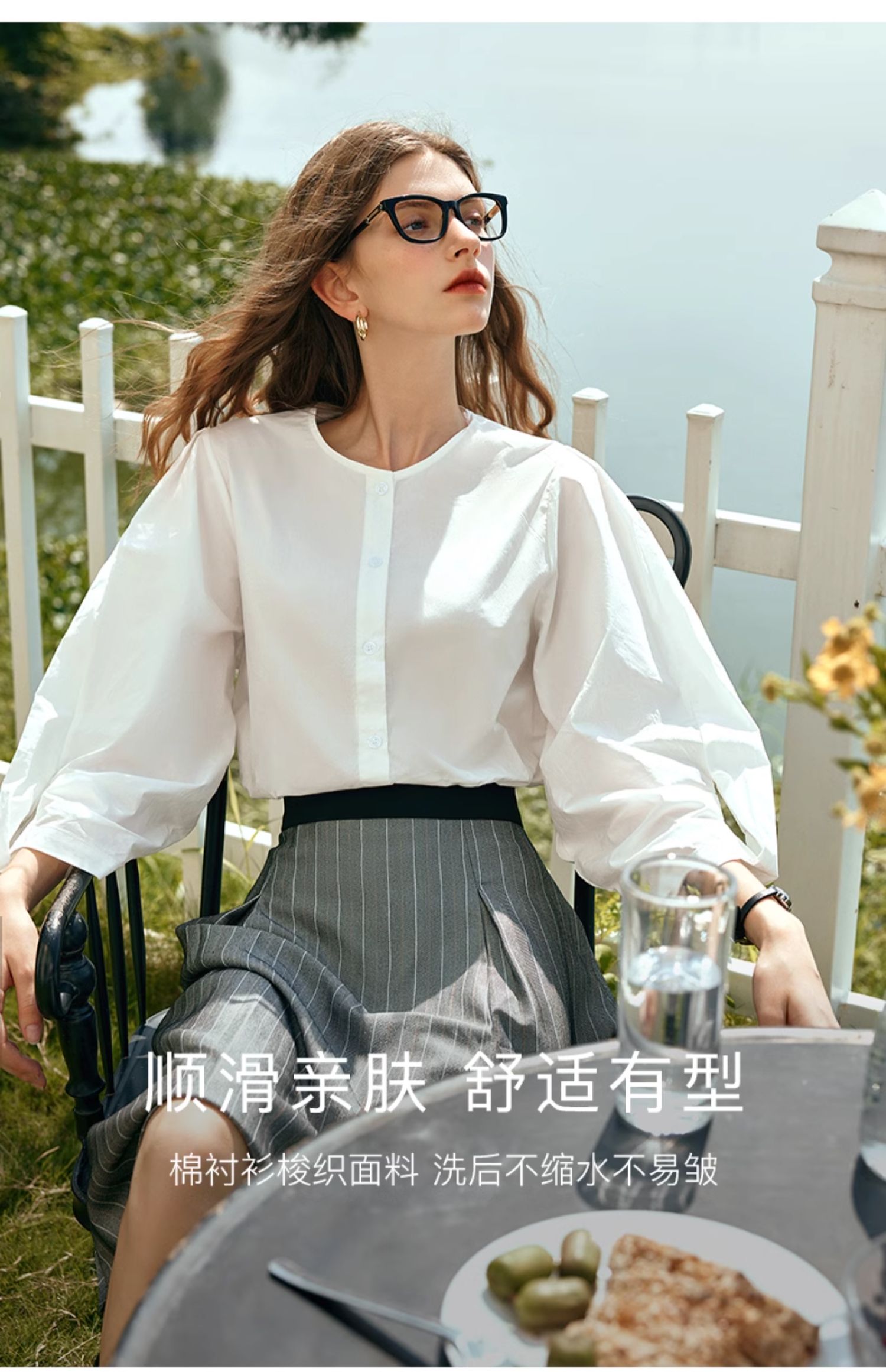 OLrain欧芮儿米白色长袖衬衫女早春2024新款宽松小众设计感上衣