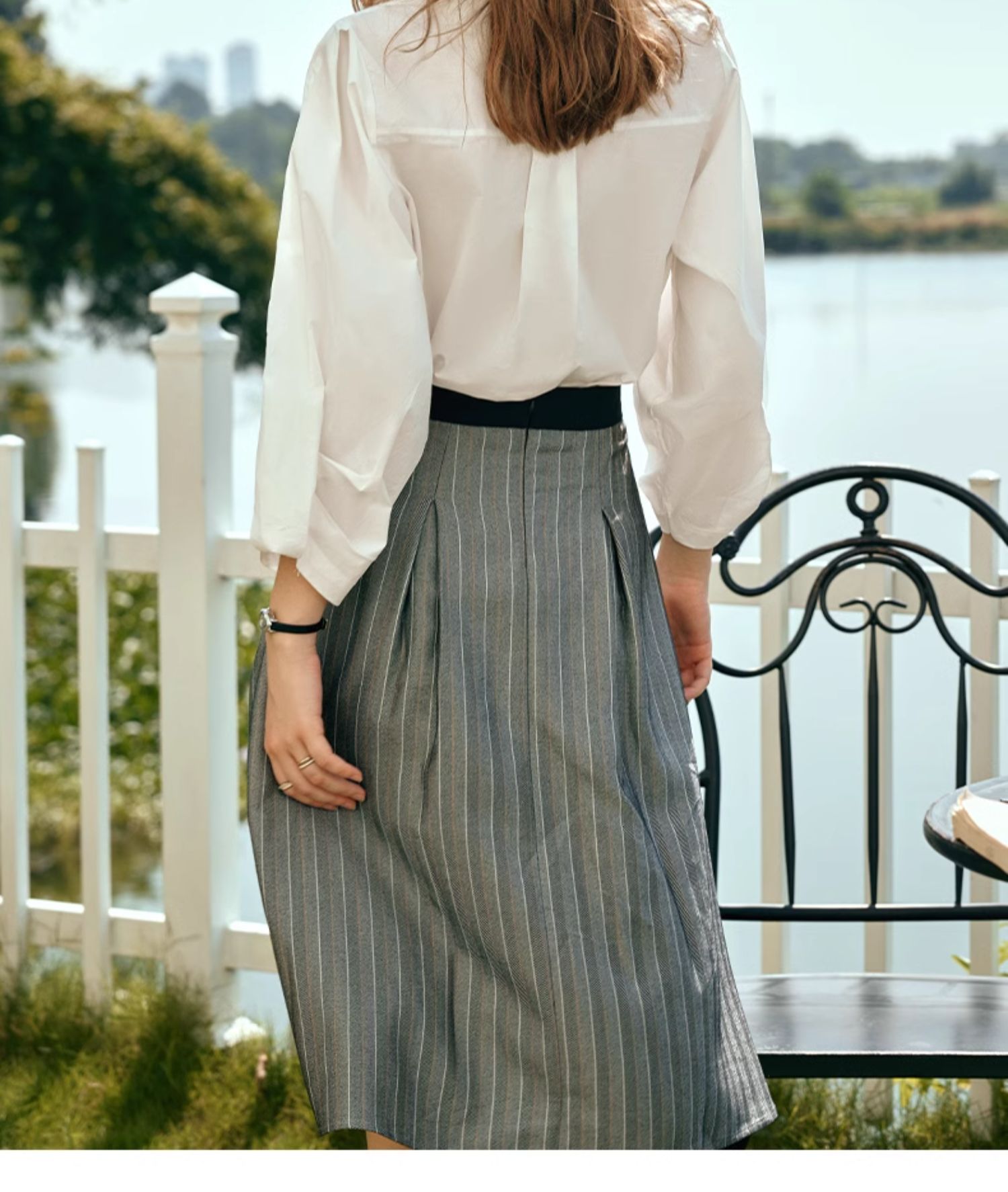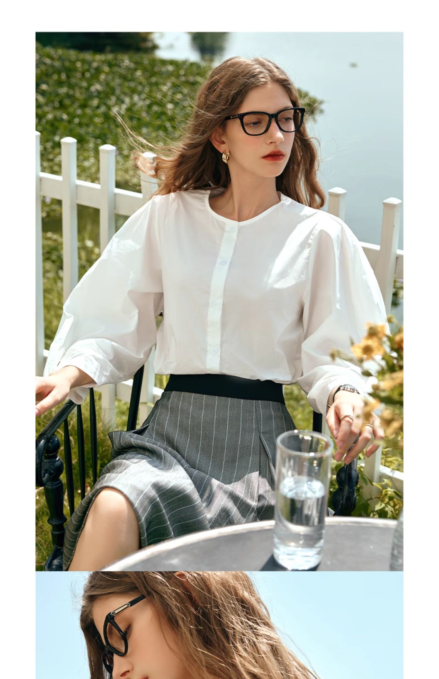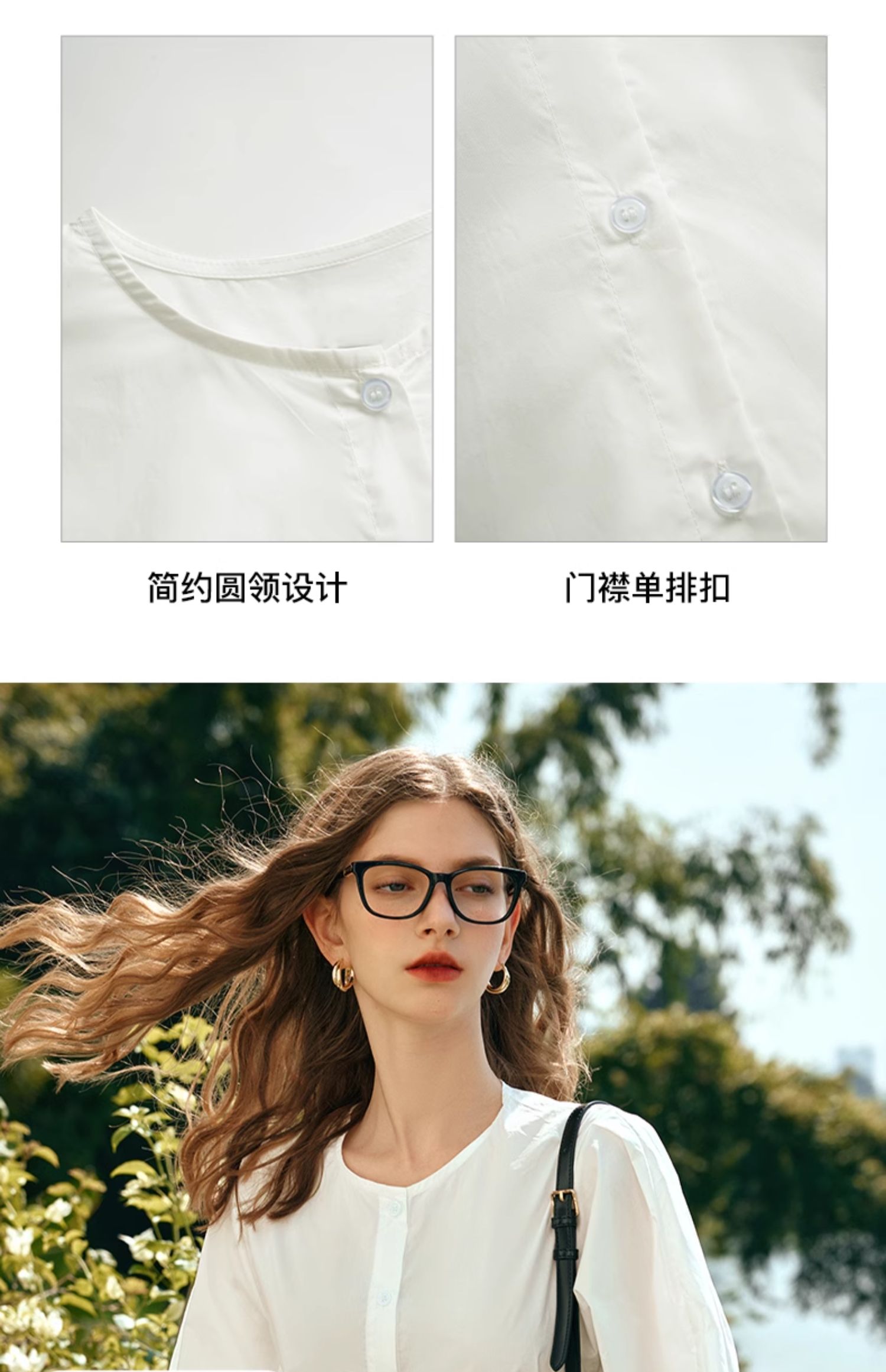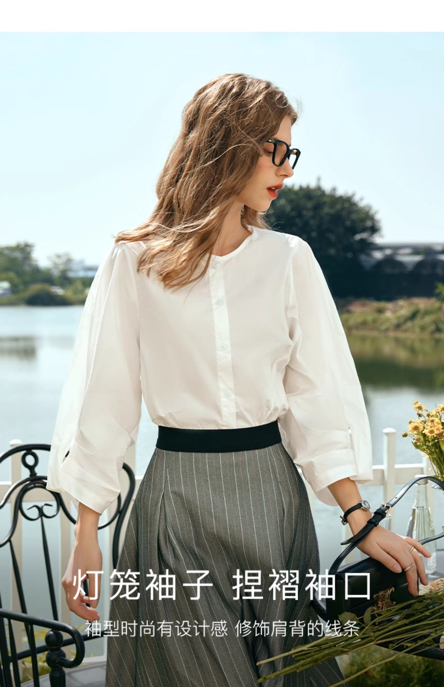 OLrain欧芮儿米白色长袖衬衫女早春2024新款宽松小众设计感上衣