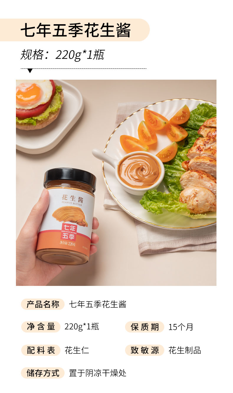 七年五季·0蔗糖0防腐剂酱料 花生酱220g/瓶