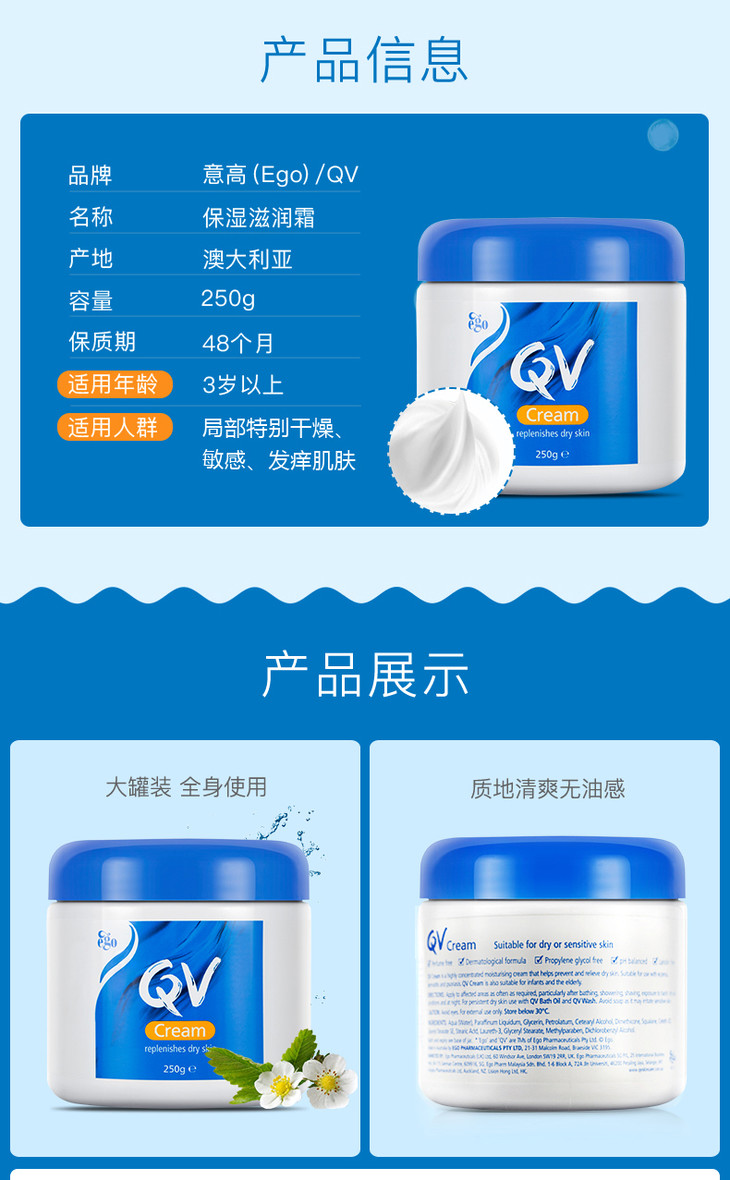 【宝宝润肤无刺激】澳大利亚Ego意高QV婴儿滋润霜 250g/罐