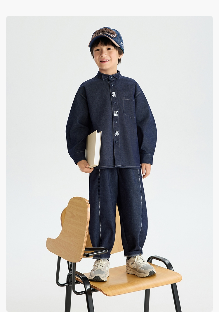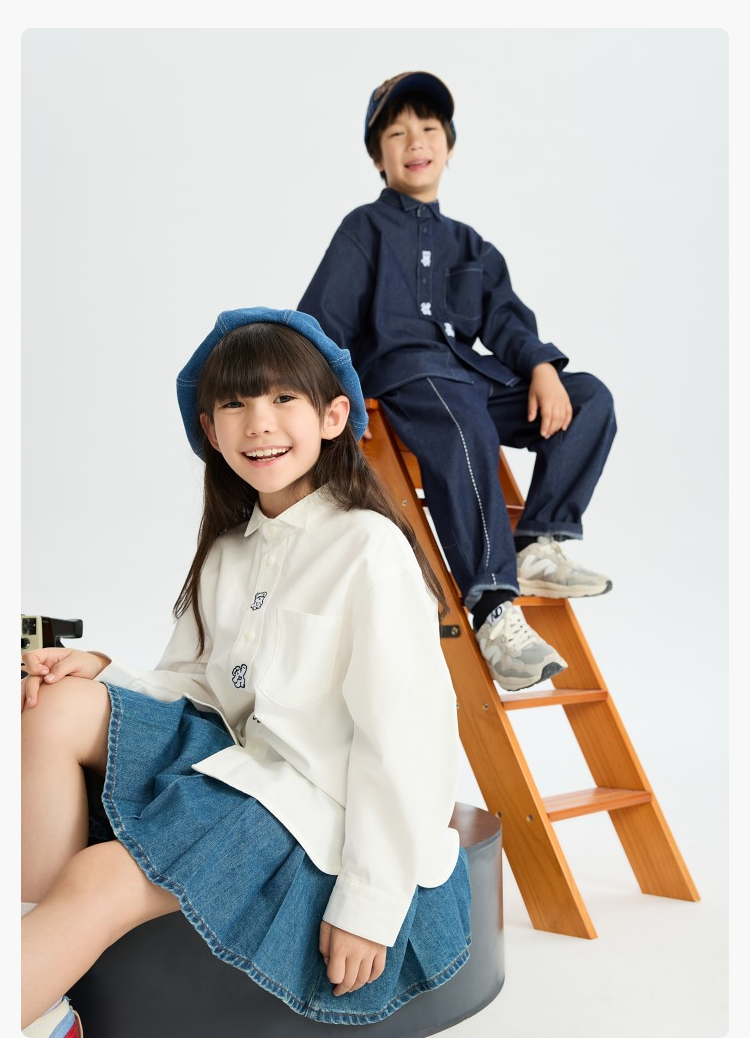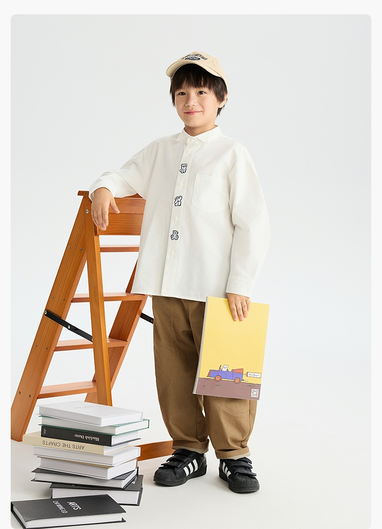漫画家【好朋熊衬衫】儿童衬衫气质优雅翼领精致刺绣学院衬衫男女