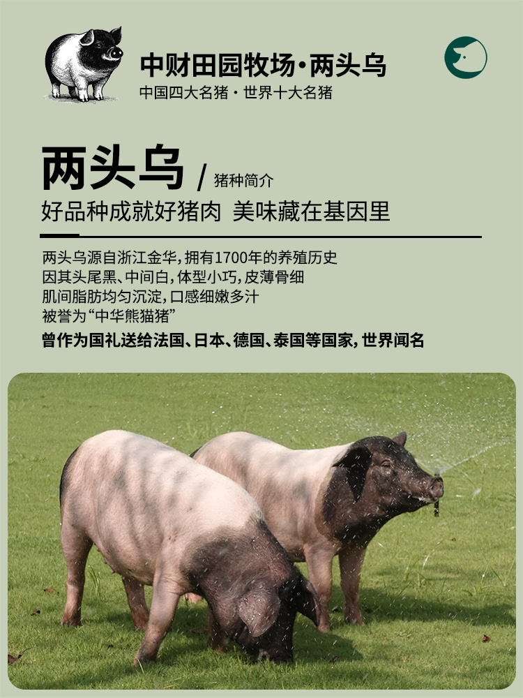特点:纯正金华两头乌品种。0激素、0抗生素、0促长素、0瘦肉精、0重金属
