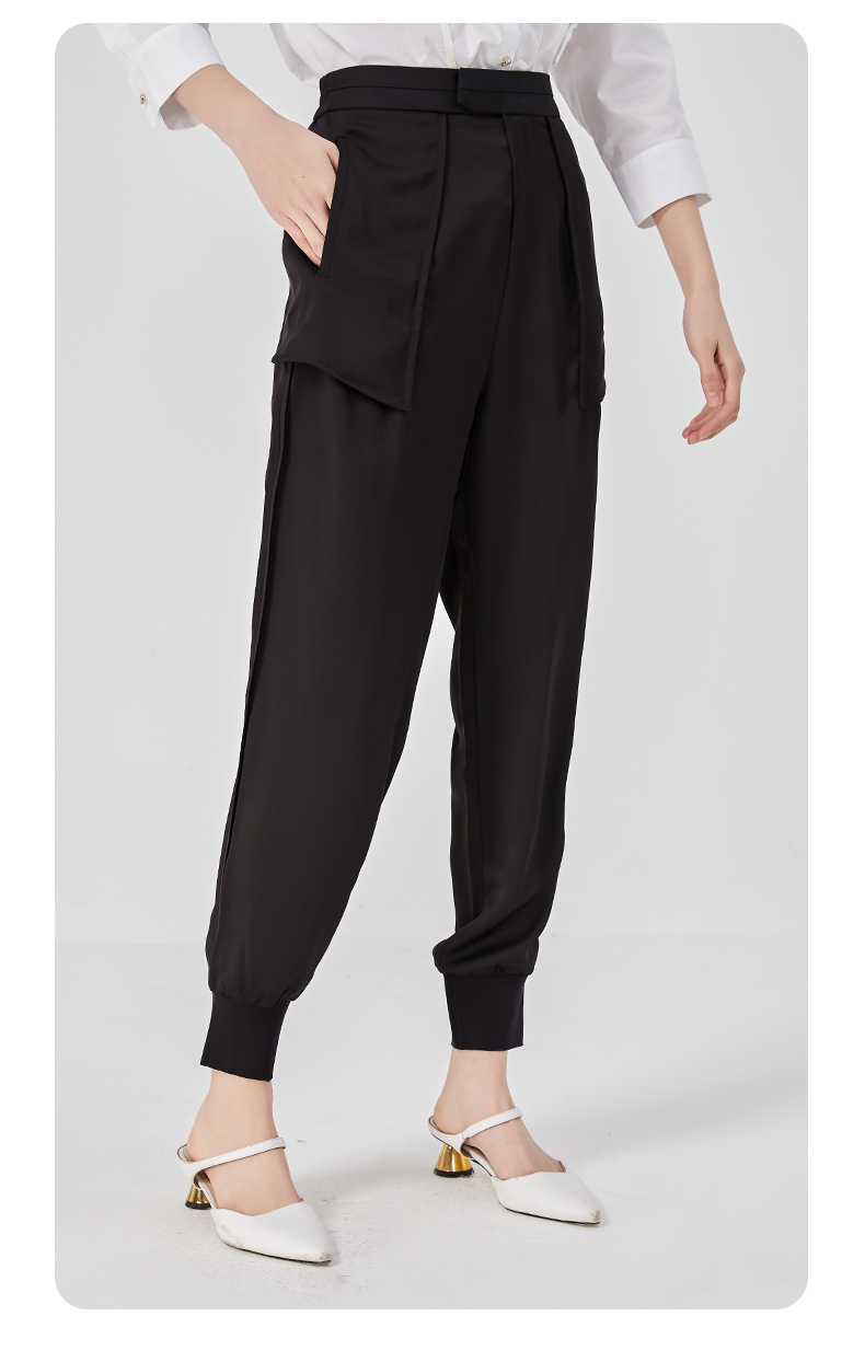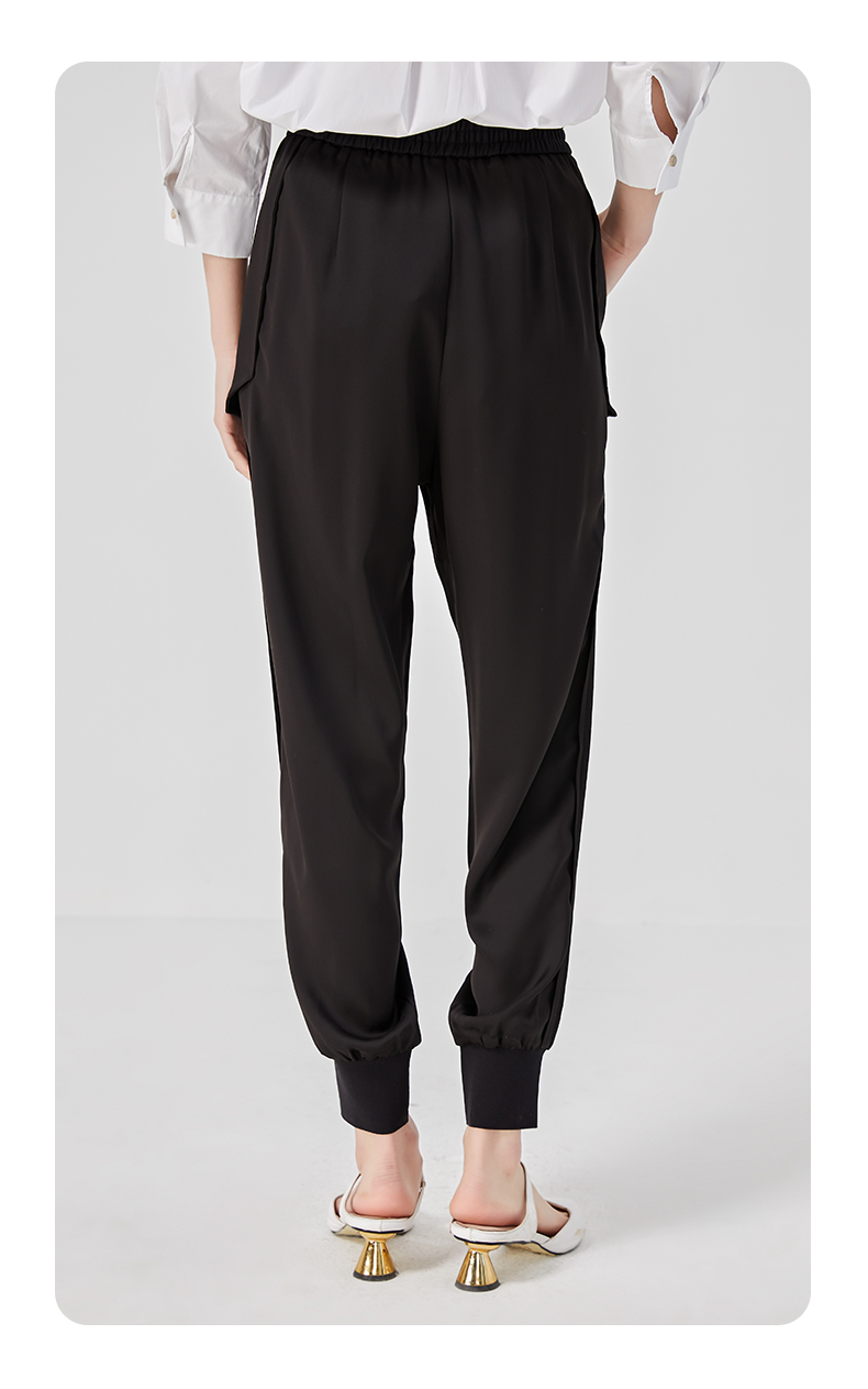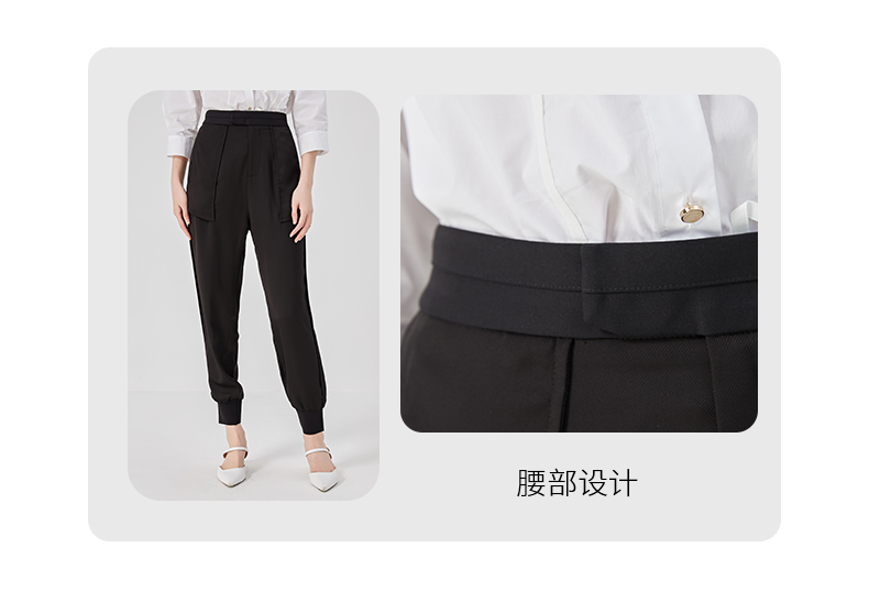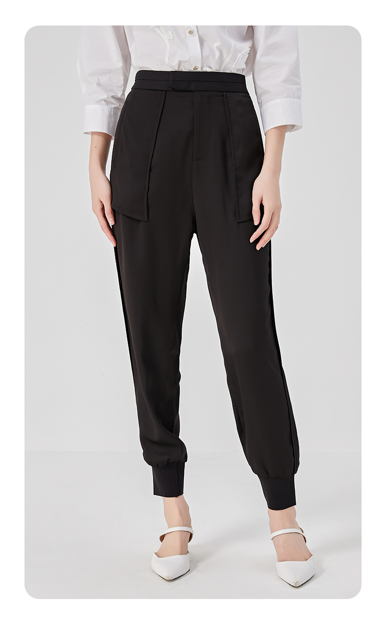 oldcolour夏季黑色高腰显瘦直筒束脚运动休闲裤女O25073504