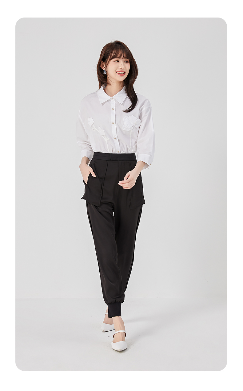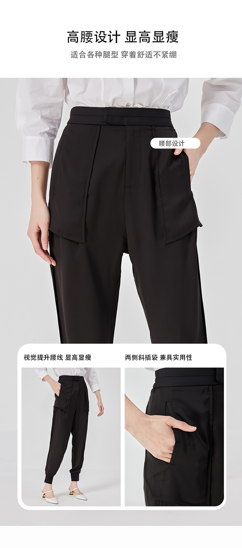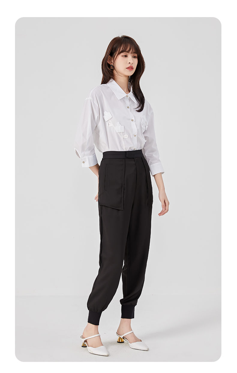 oldcolour夏季黑色高腰显瘦直筒束脚运动休闲裤女O25073504