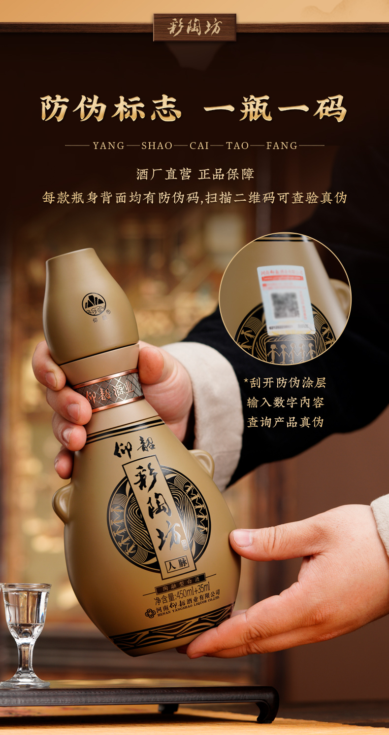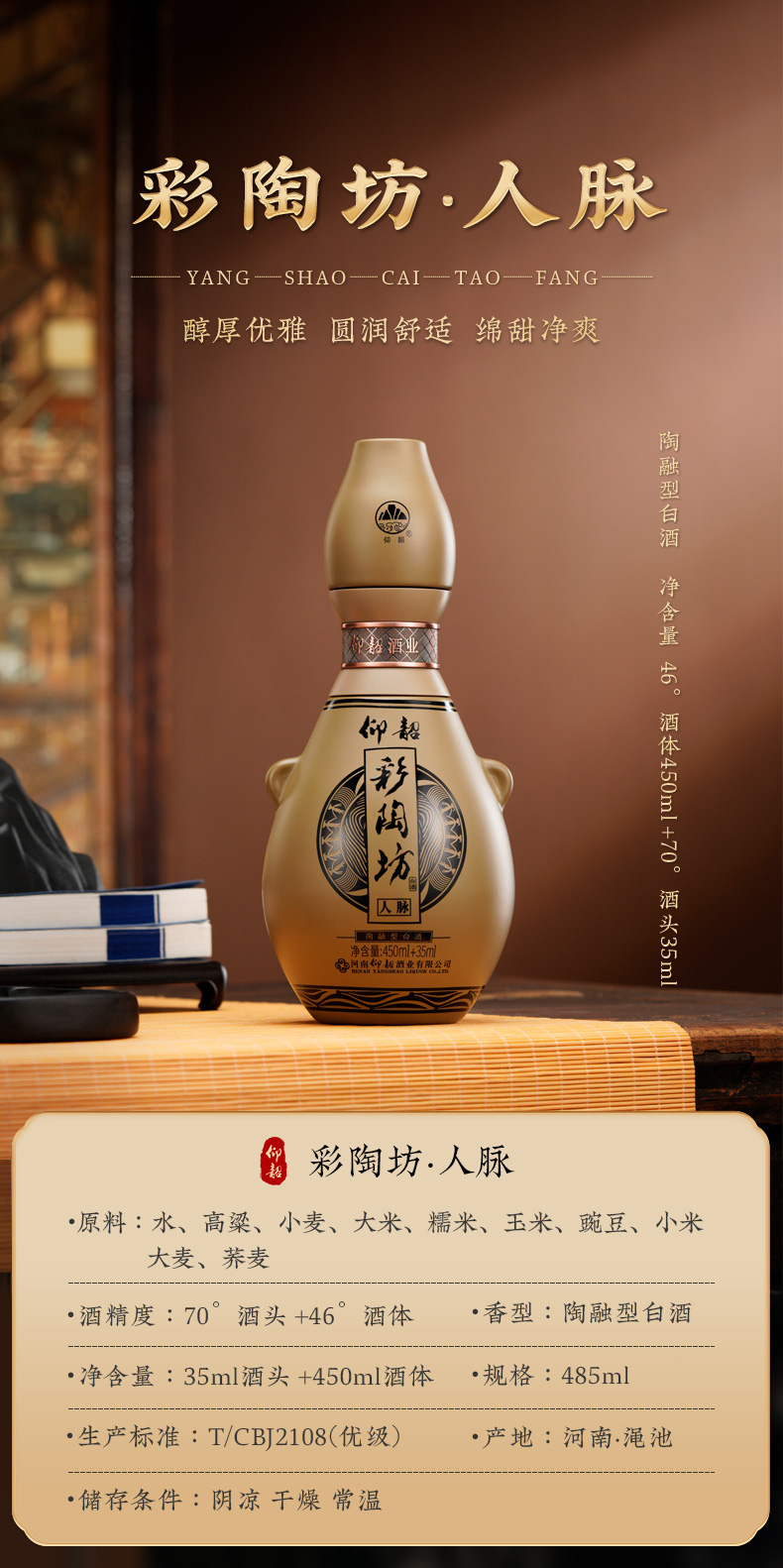 河南仰韶彩陶坊 人脉 礼盒装450ml46度+35ml70度酒头 酒厂直营 正品保障 绵柔不辣喉
