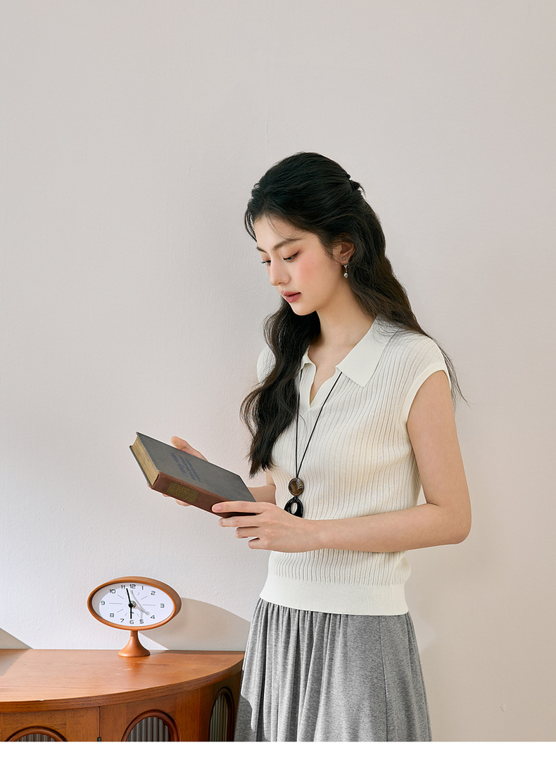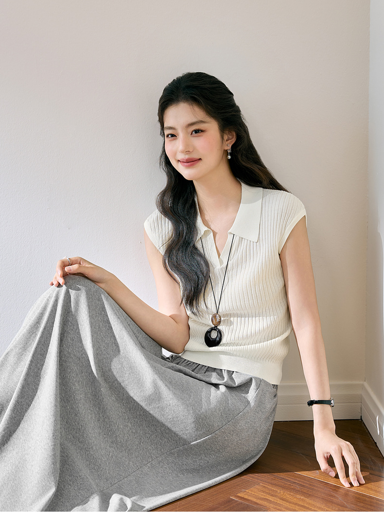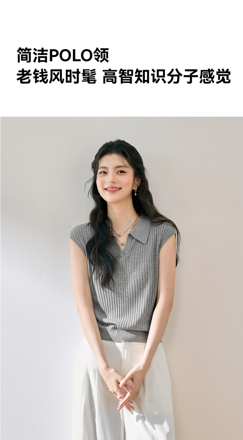 【严选】诗凡黎polo领老钱风针织衫2025夏时髦别致气质修身显瘦套头衫女7G4331161