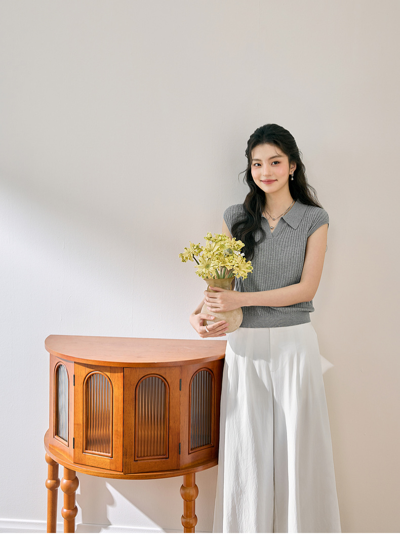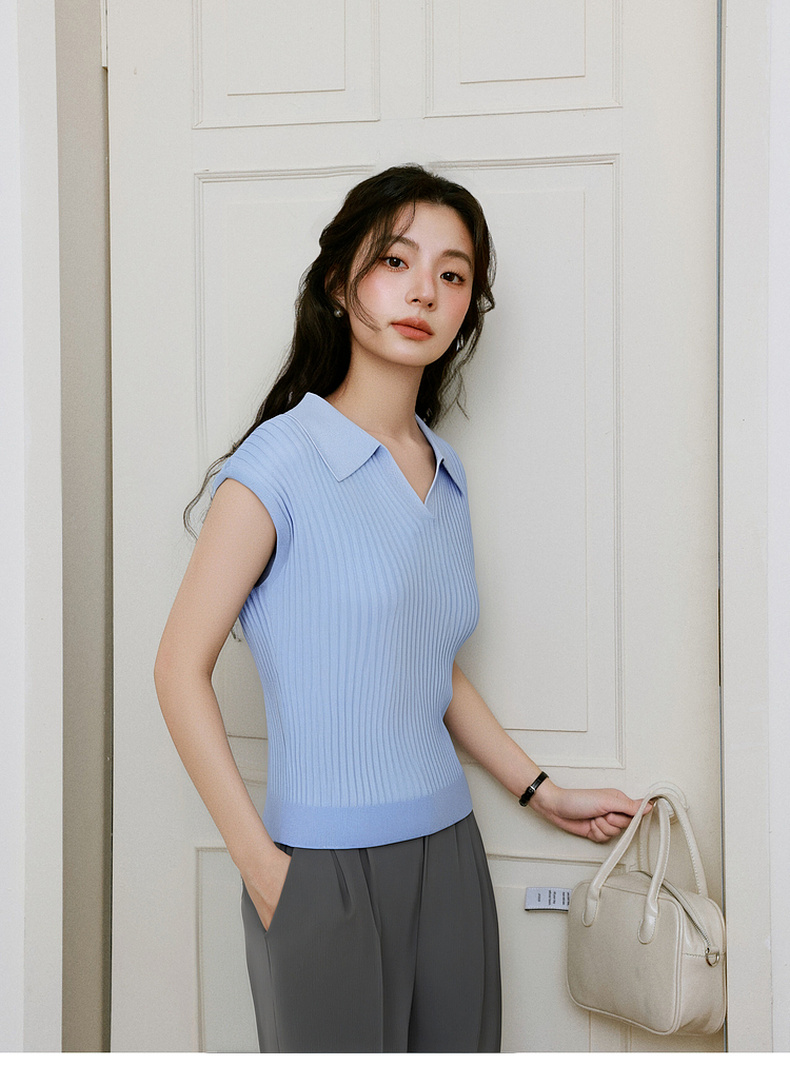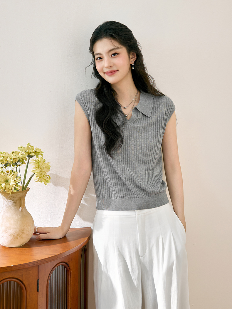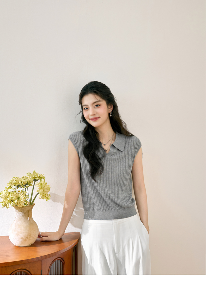 【严选】诗凡黎polo领老钱风针织衫2025夏时髦别致气质修身显瘦套头衫女7G4331161