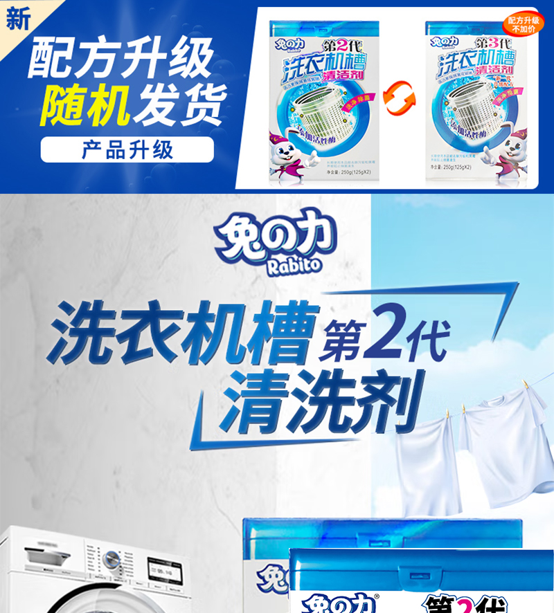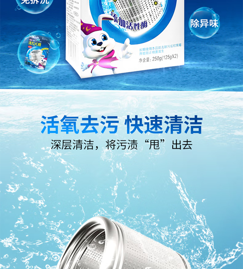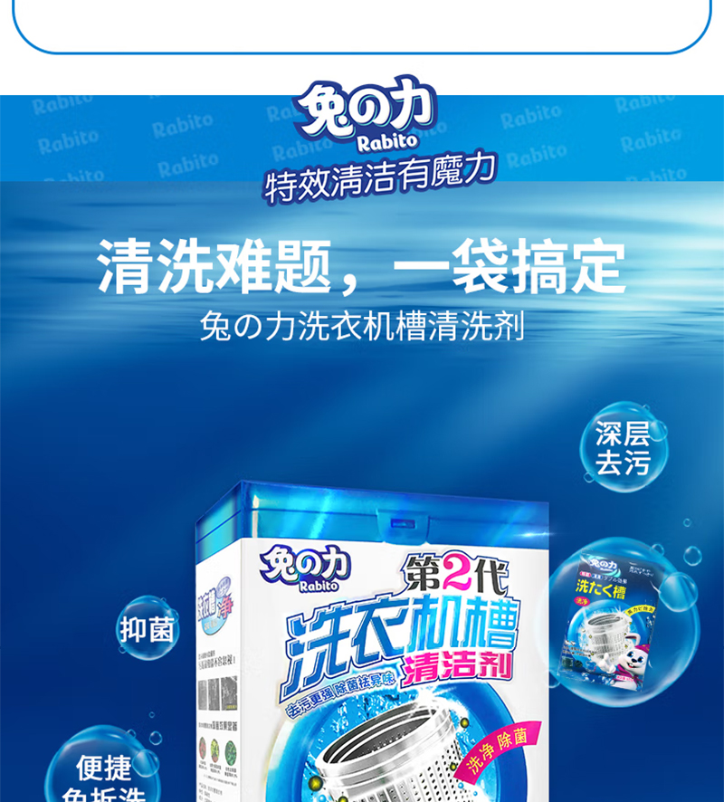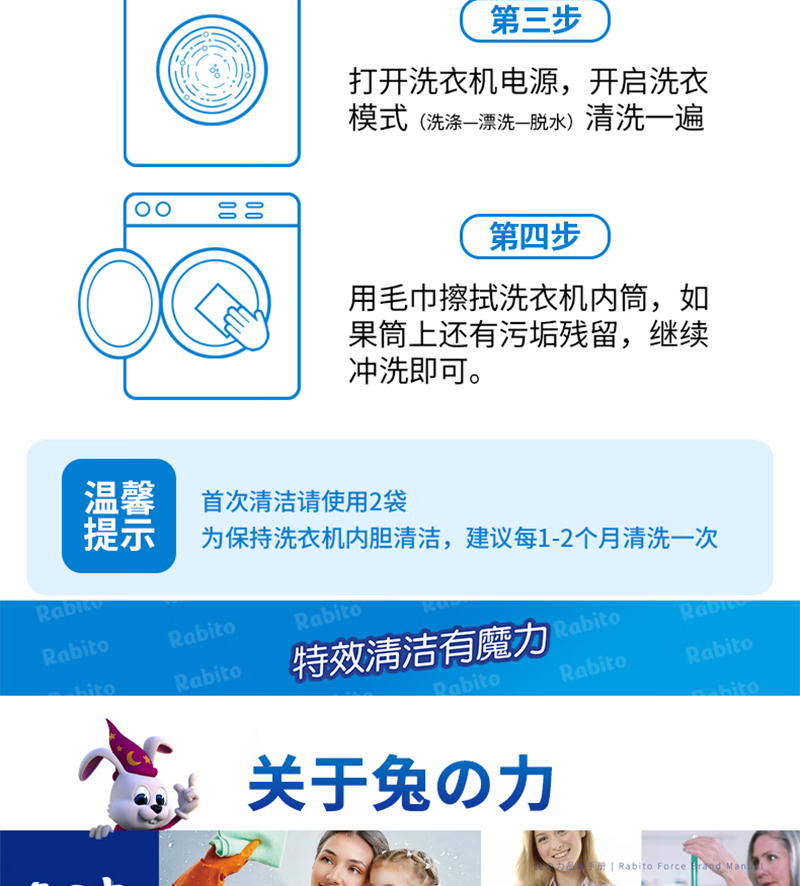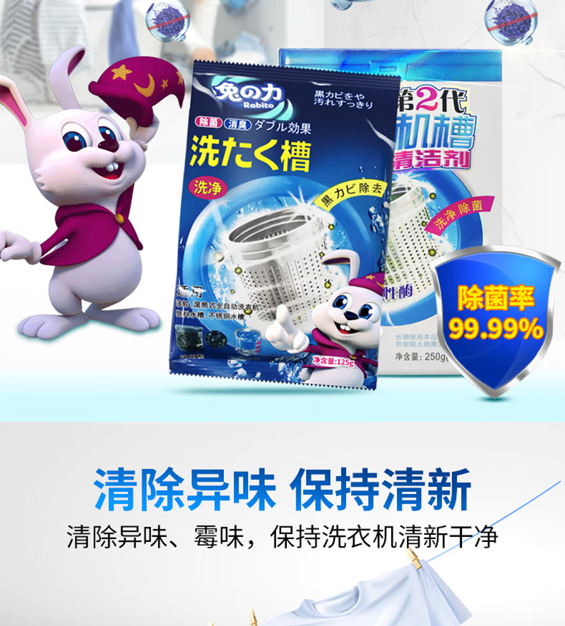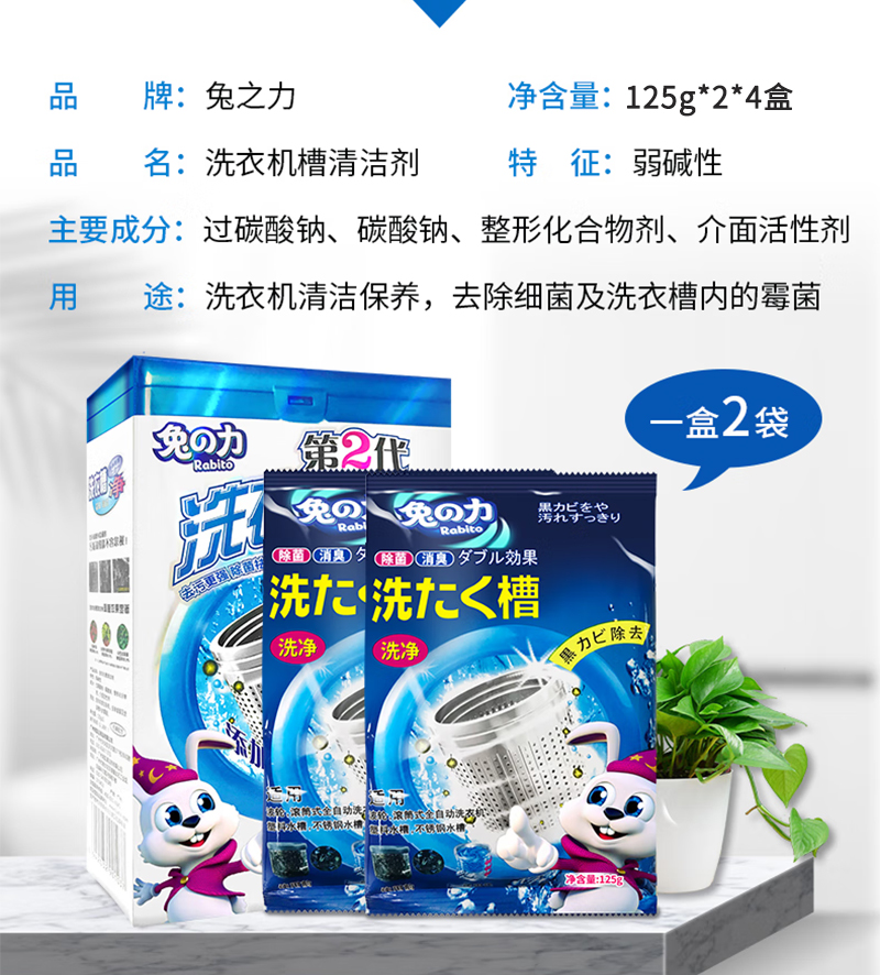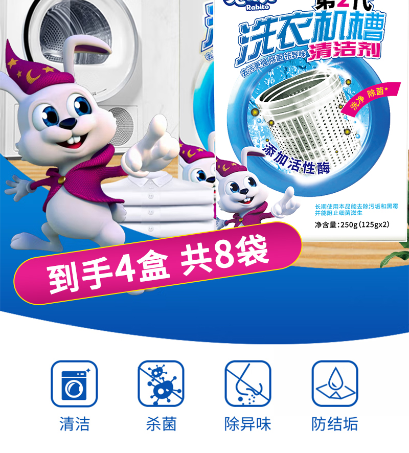 兔の力洗衣机槽清洁剂250G*4盒【共8袋】