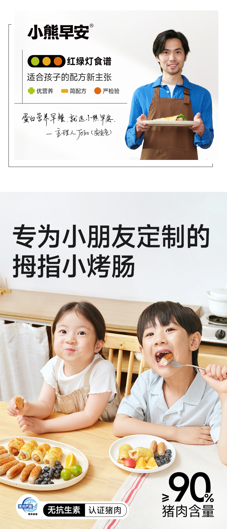 【小熊早安】拇指小烤肠200g/盒 拇指大小,好煎易熟,只选用无抗认证猪肉,孩子放心吃