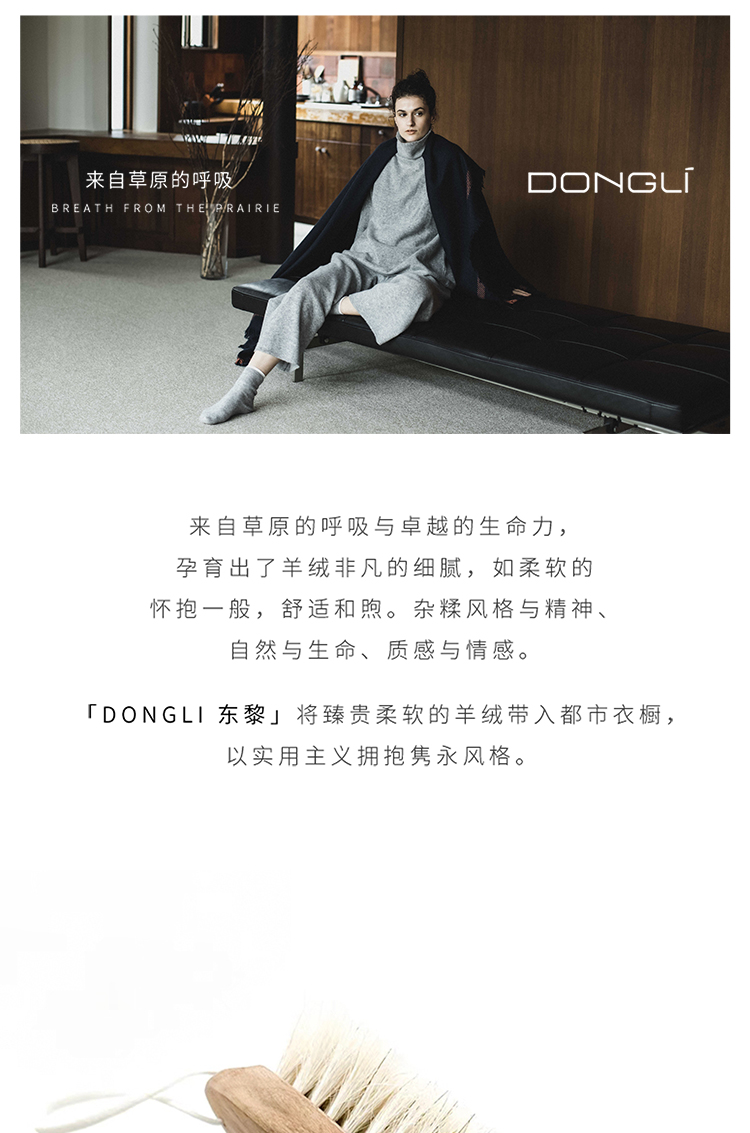 东黎羊绒是赤峰东荣集团自主品牌,自有牧场/羊绒制品全产业链优势,实现了羊绒从“牧场”到“商场”的华丽转变。