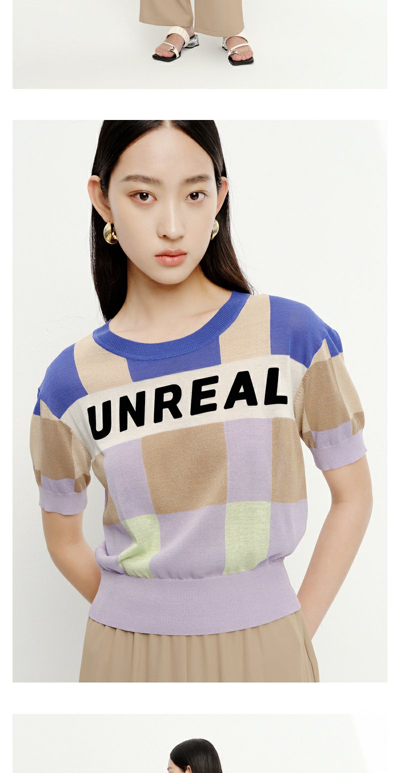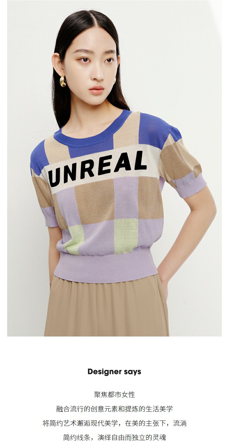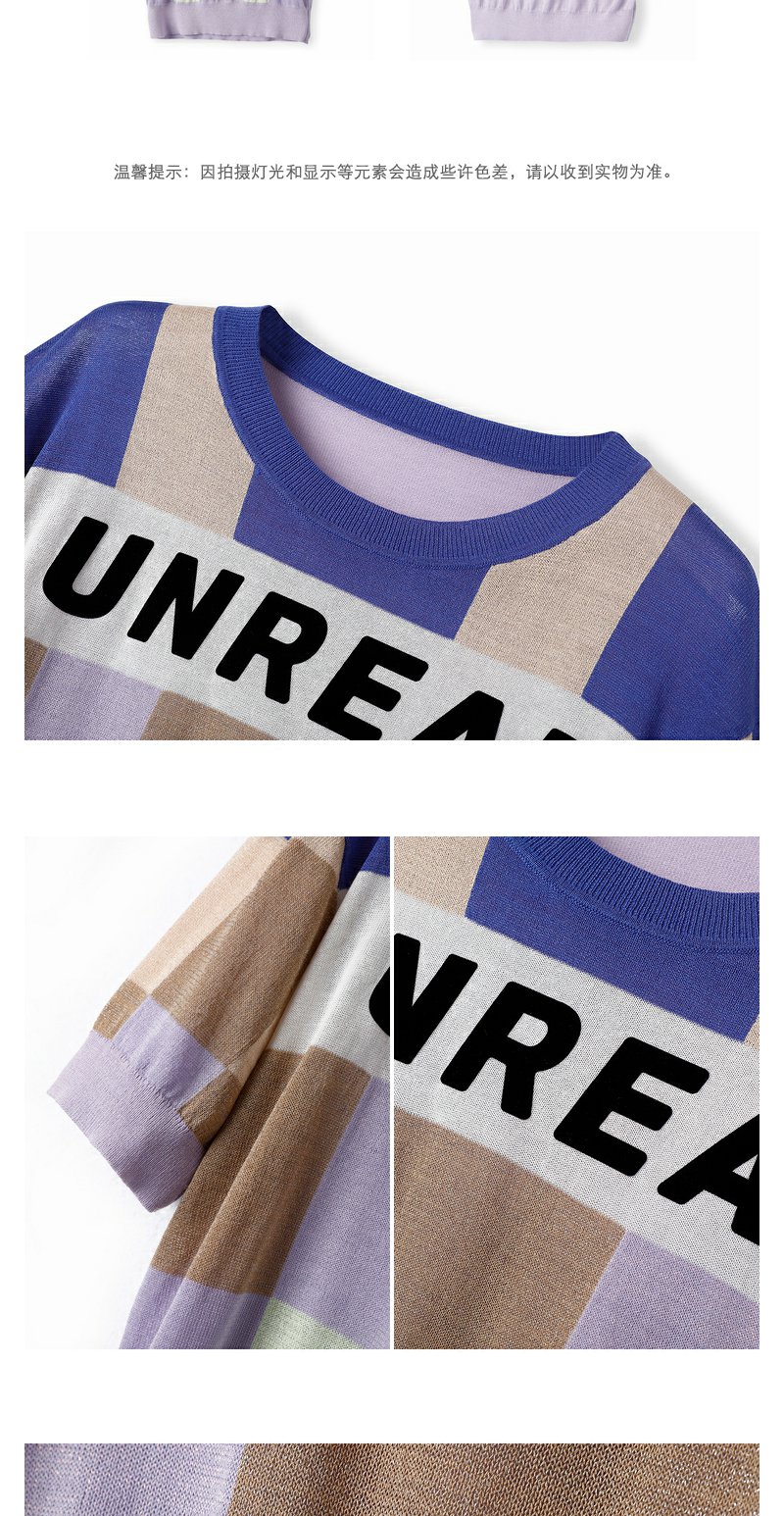 NEELLY纳俪商场同款拼色字母针织衫女夏季短袖薄款套头衫短款上衣N23052A01142