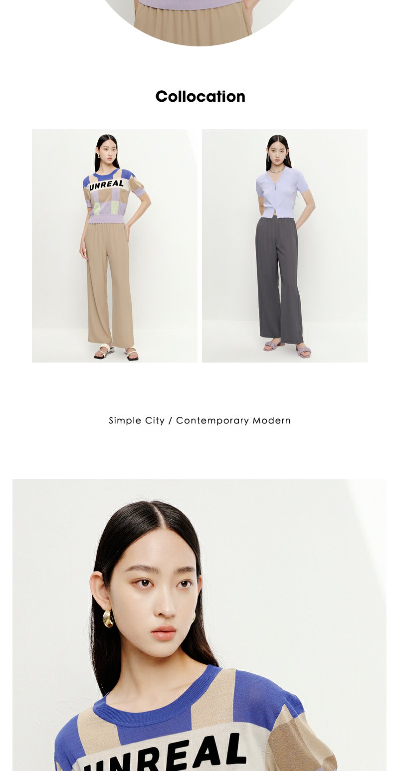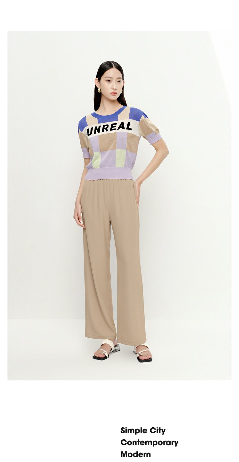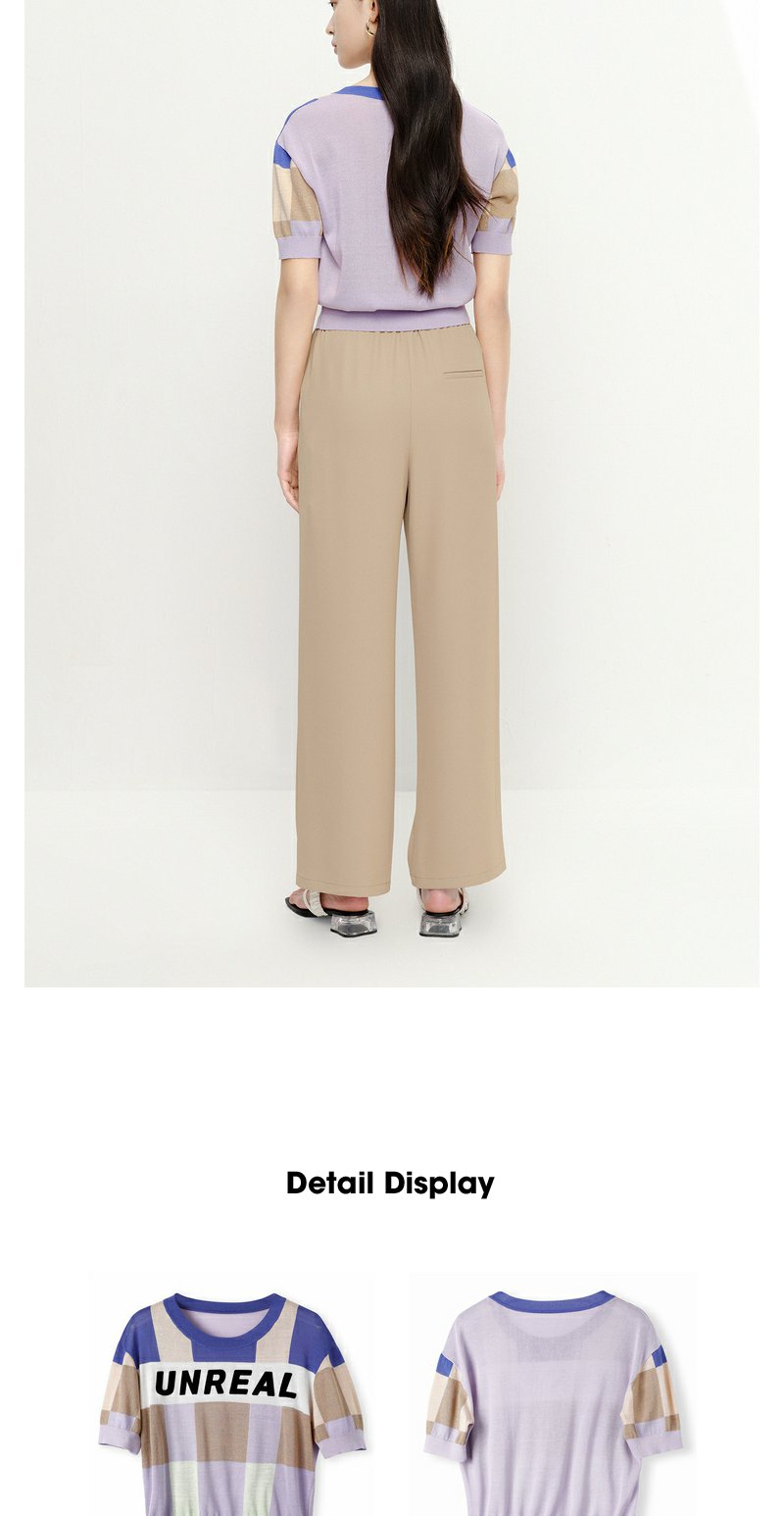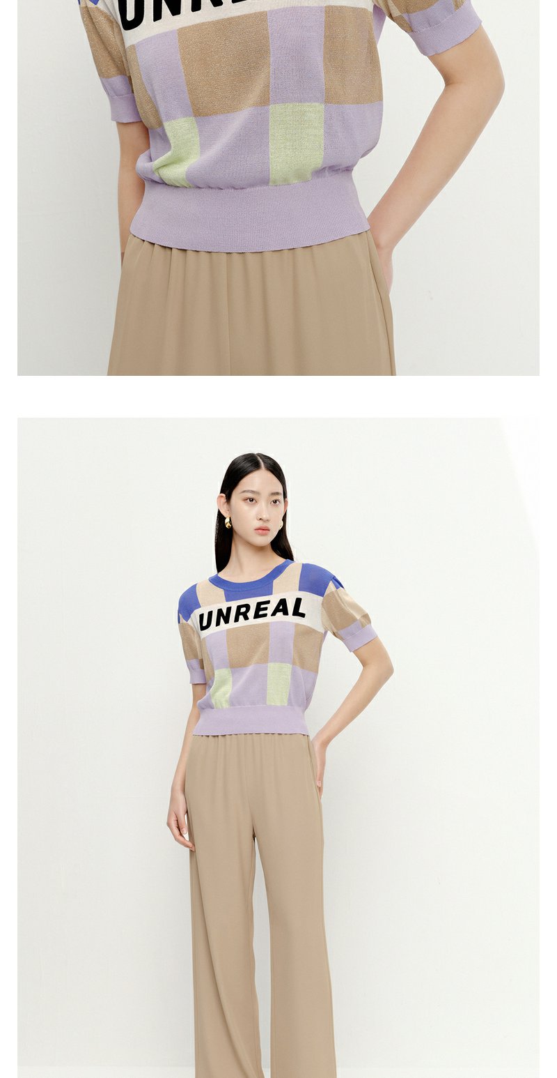 NEELLY纳俪商场同款拼色字母针织衫女夏季短袖薄款套头衫短款上衣N23052A01142