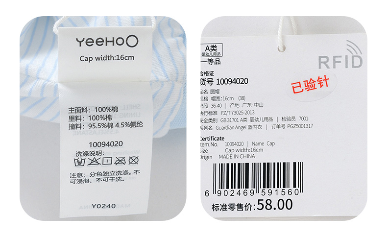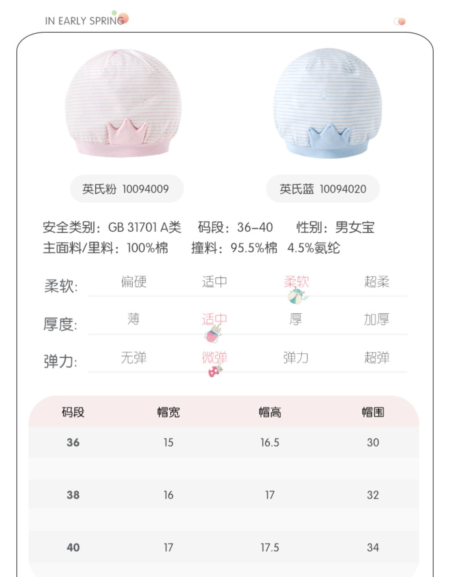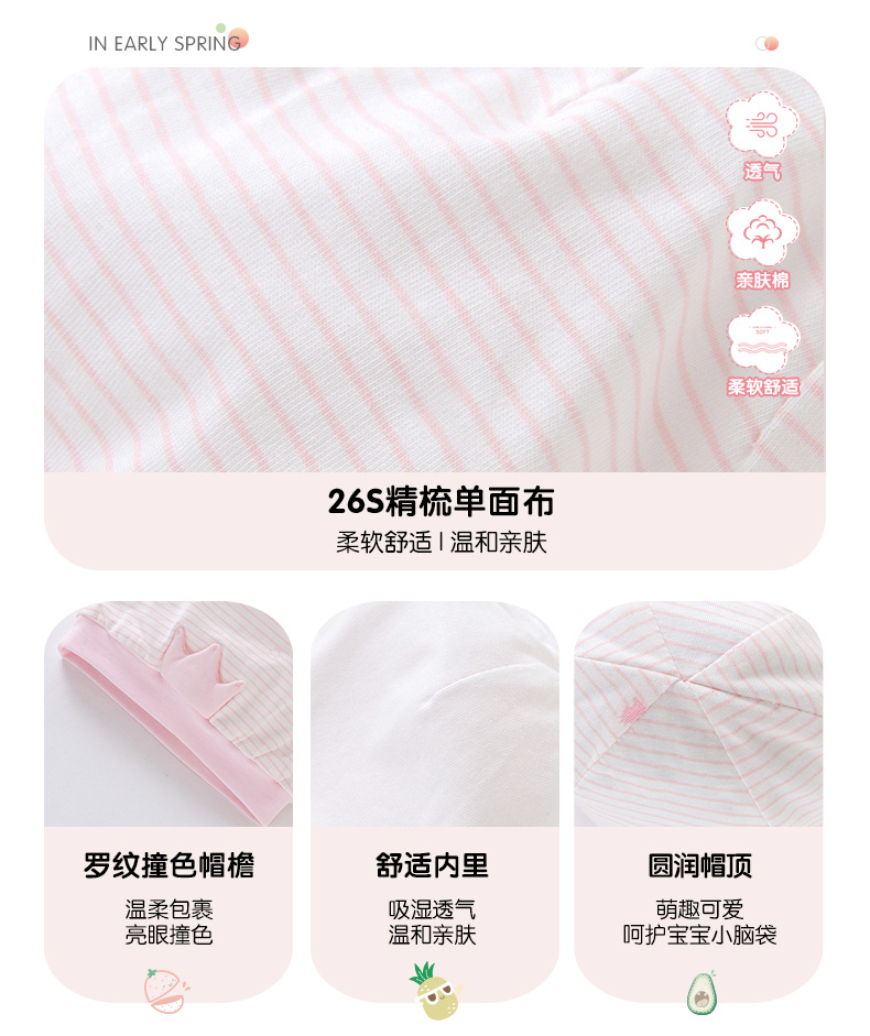 英氏婴儿圆帽男女宝宝针织条纹休闲帽子10094020 10094009