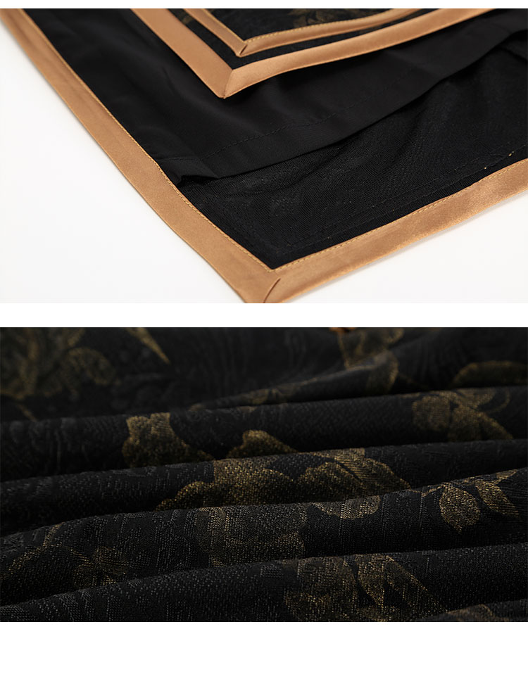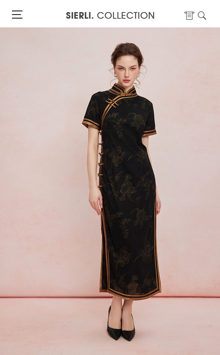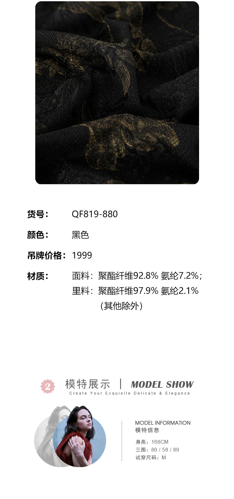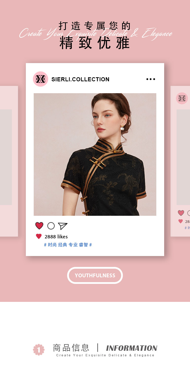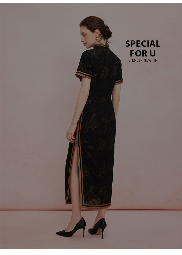 QF81925新款优雅暗花纹线条流畅撞色镶边盘扣短袖旗袍连衣裙
