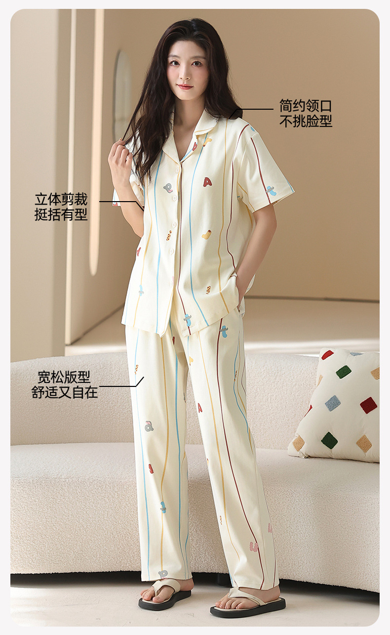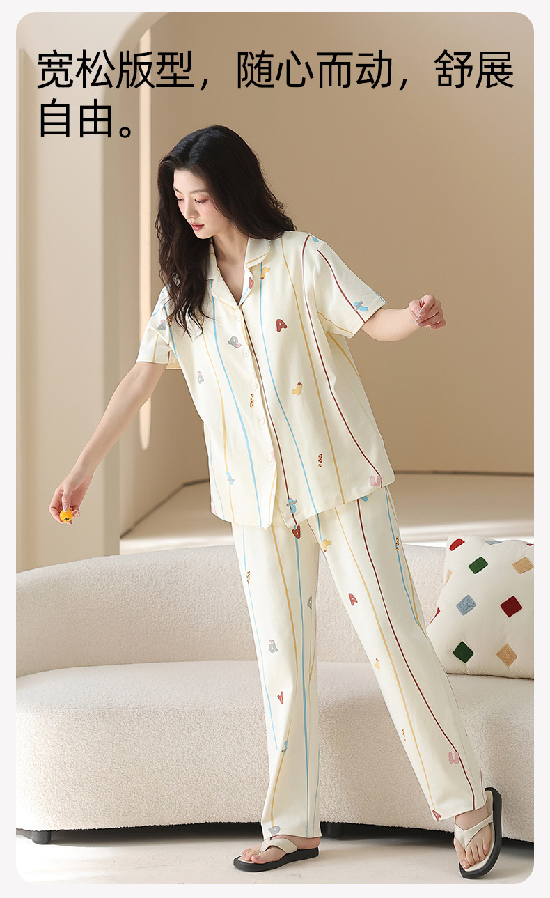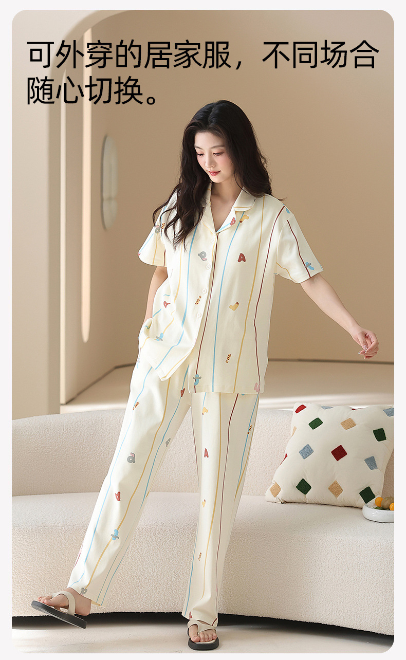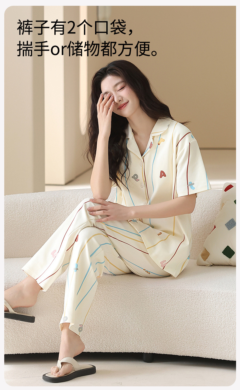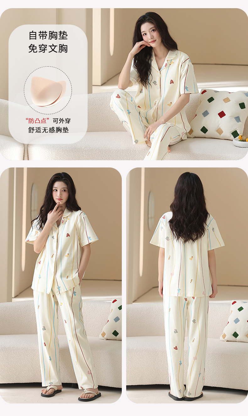 2026 新款 夏季带胸垫纯棉睡衣女 可爱甜美短袖长裤宽松可外穿家居服套装ZXFX2026