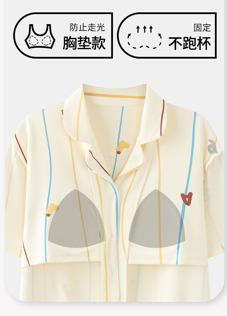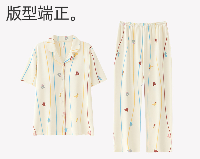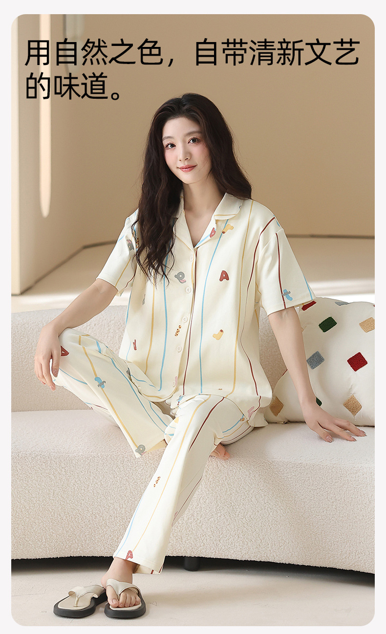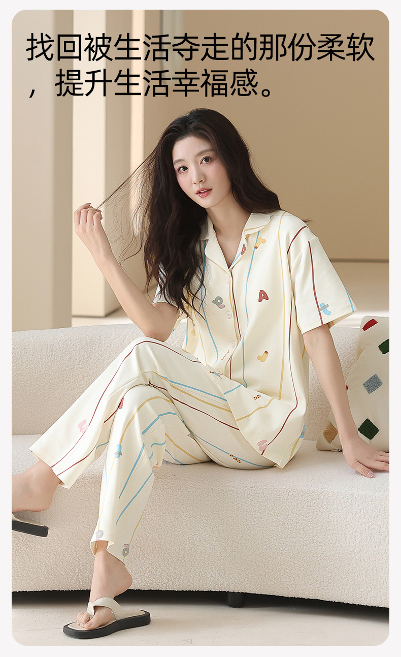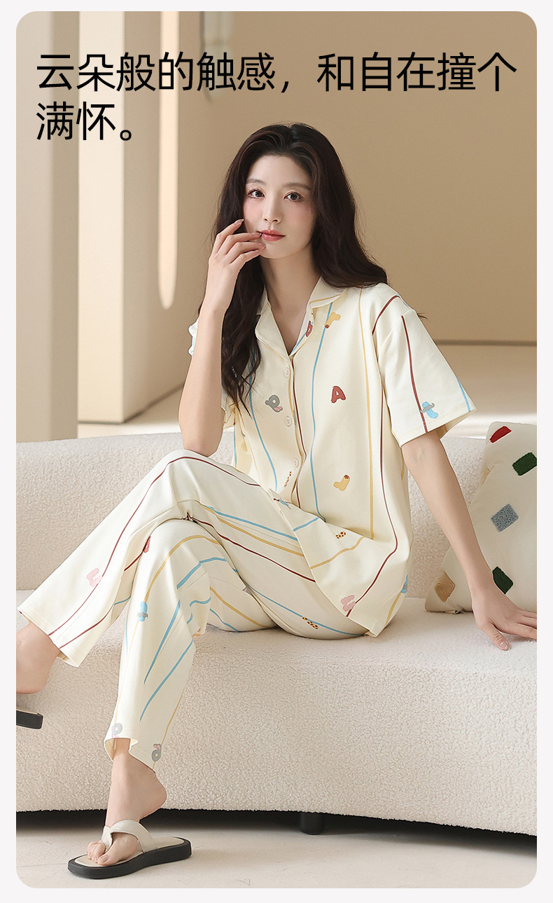 2026 新款 夏季带胸垫纯棉睡衣女 可爱甜美短袖长裤宽松可外穿家居服套装ZXFX2026