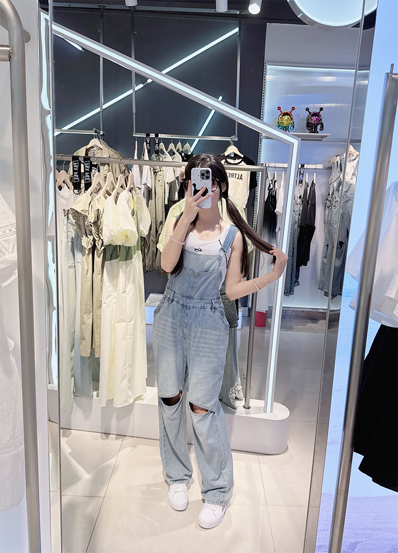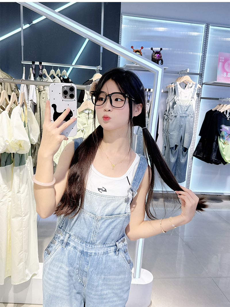 P&X设计师女装夏季直筒宽松百搭牛仔背带长裤 824230095 蓝色