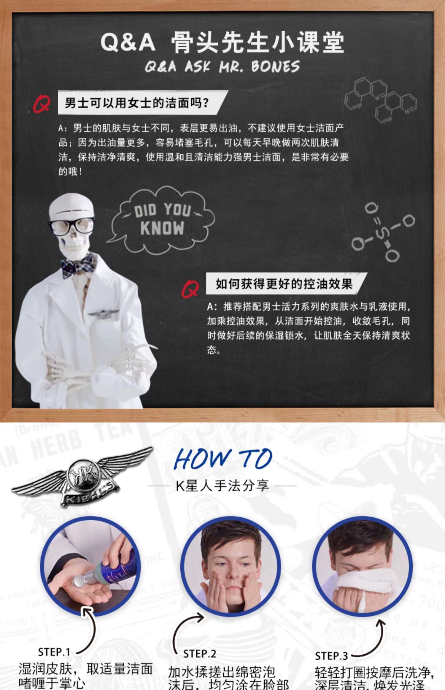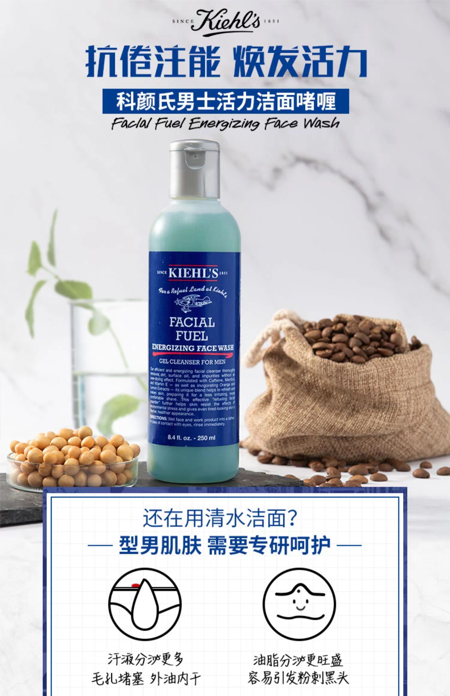科颜氏男士洗面奶/洁面啫喱250ML