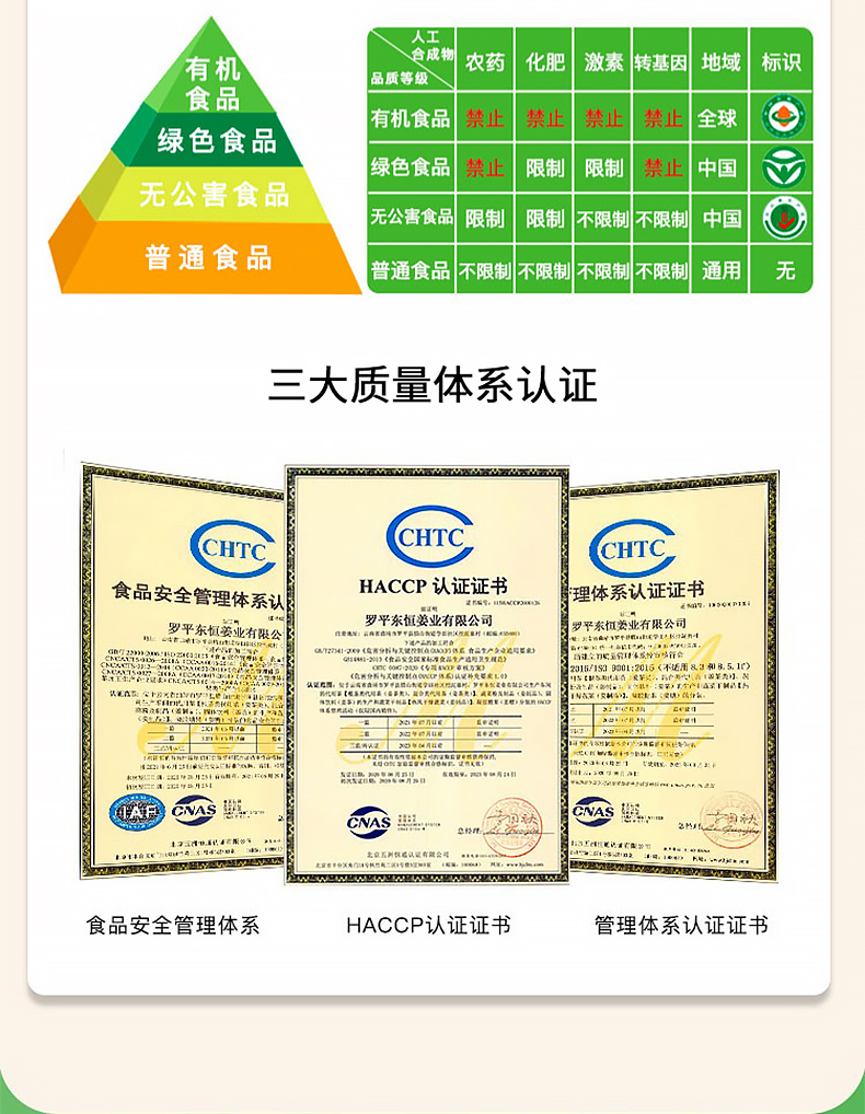 1、小黄姜原料必需是来自已获有机颁证的产品或野生天然产品;