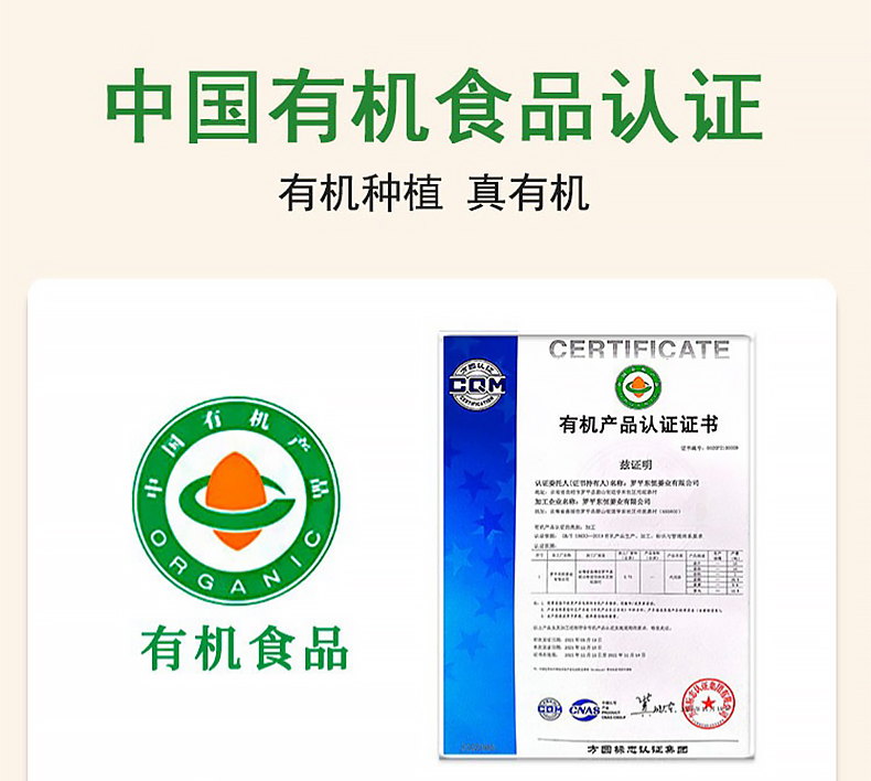 3、已获得有机认证的原料在终产品中所占的比例不得少于95%;