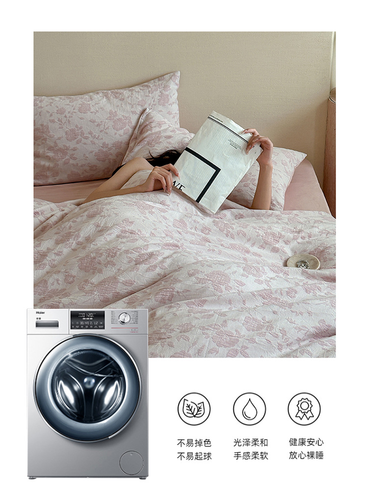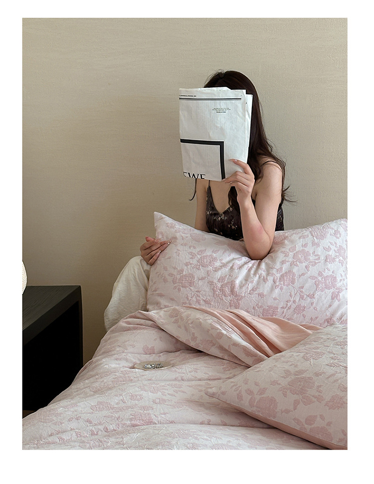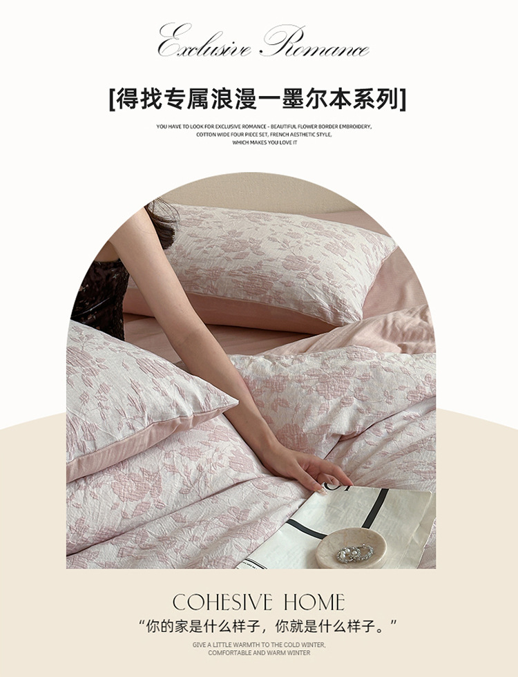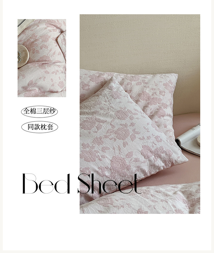 【三层纱提花四件套】全棉三层纱四件套色织大提花床品件套水洗柔软床品