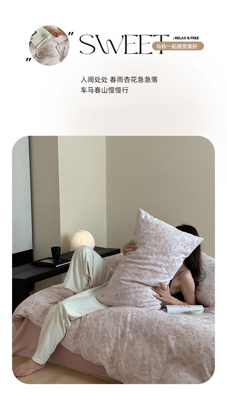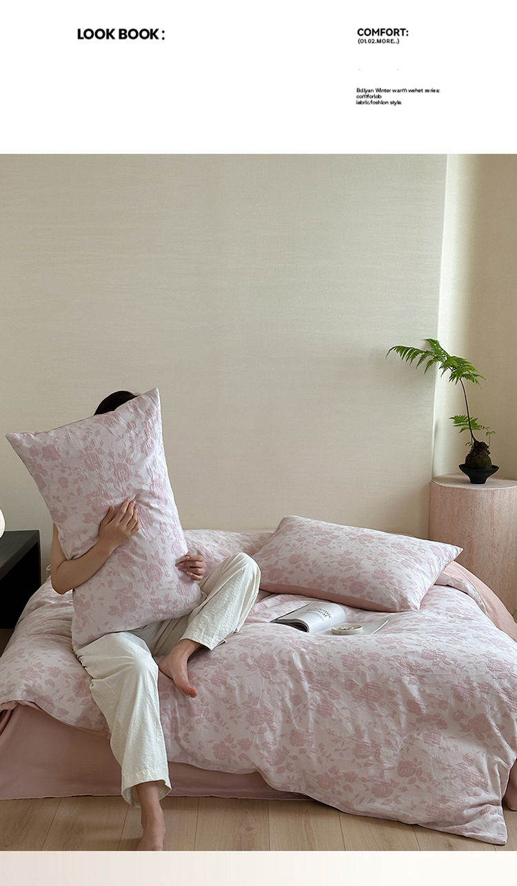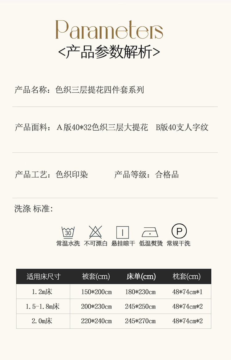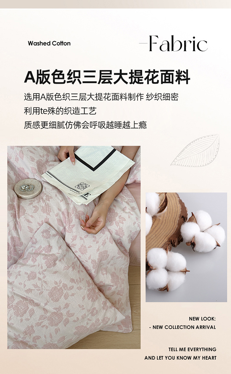 【三层纱提花四件套】全棉三层纱四件套色织大提花床品件套水洗柔软床品