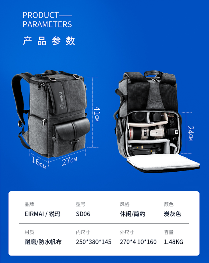 狼族优选丨多功能摄影双肩数码背包 便携摄影单反相机包 笔记本包
