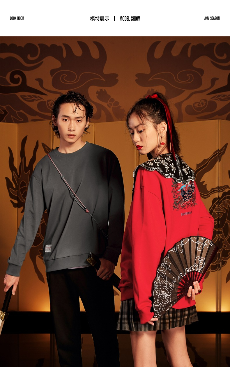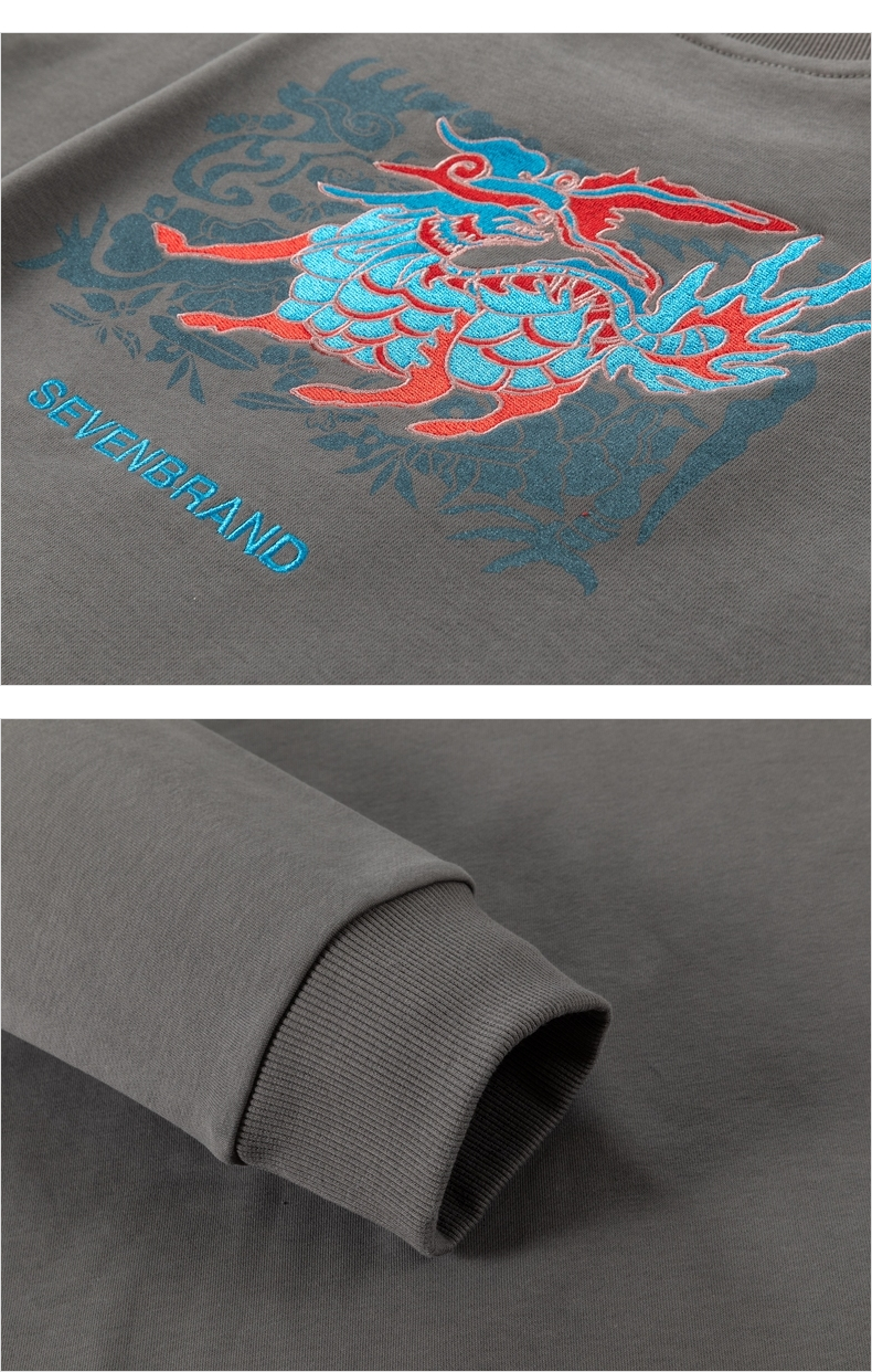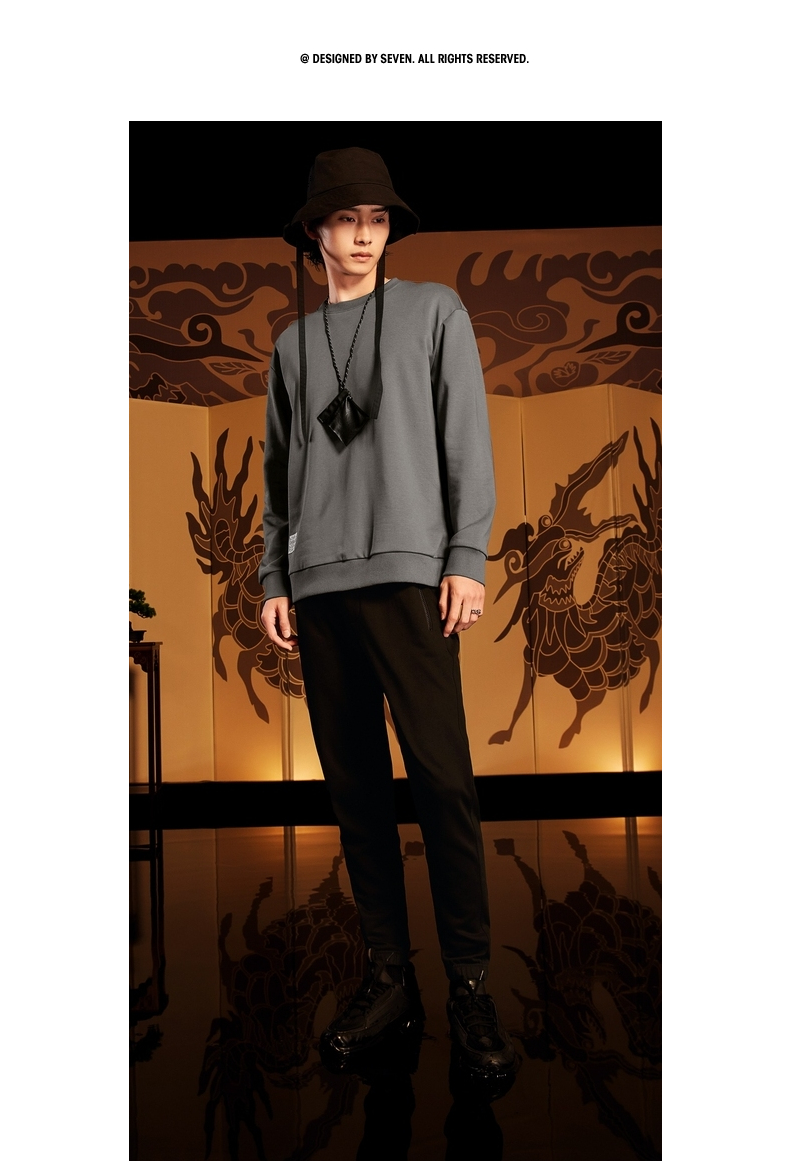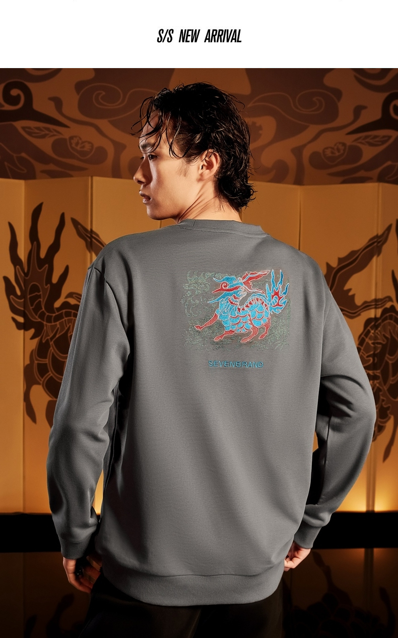 【特价】【新年麒麟祥瑞系列】柒牌卫衣男新款时尚青年圆领宽松长袖衣 122W70020