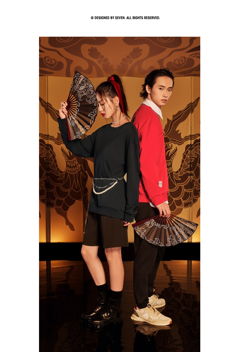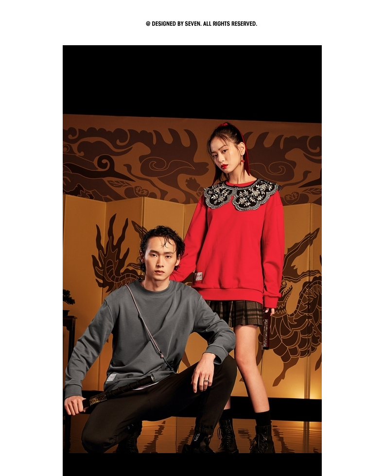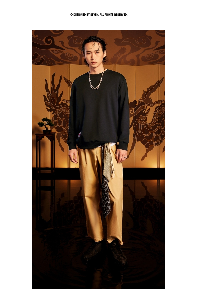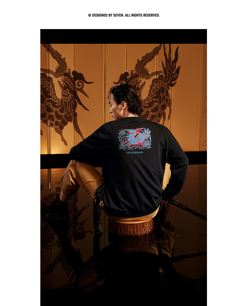 【特价】【新年麒麟祥瑞系列】柒牌卫衣男新款时尚青年圆领宽松长袖衣 122W70020