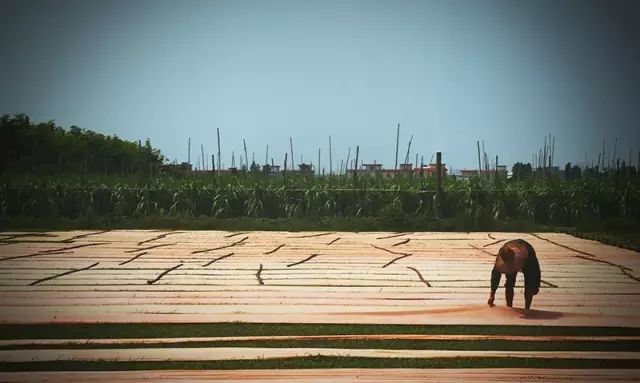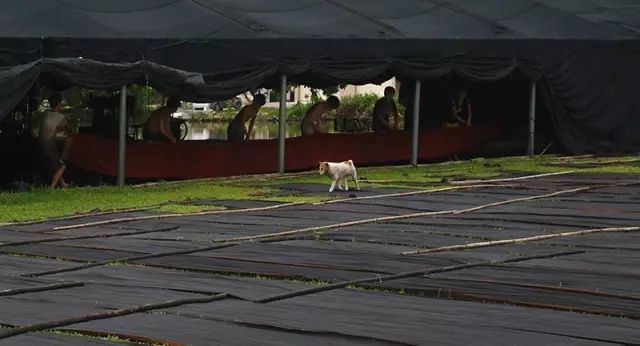 香云纱制作需涉及到13项纯手工操作,其中,以「晒莨」一环最为关键,却也最为辛苦。七月里炎热的正午,太阳流火,正是办公室里的人们躲避酷暑的时分。但对于制作香云纱的工匠们而言,这是每天最重要、最宝贵的工作时段。