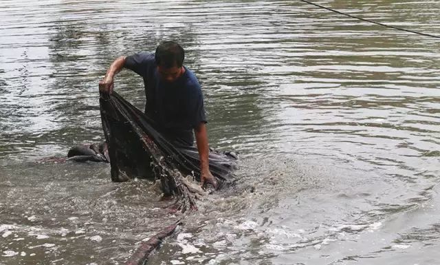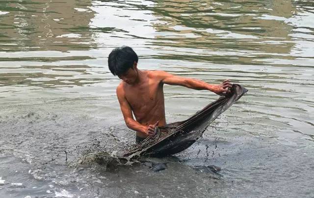 涂泥后的绸缎需再晾晒半小时,期间泥土中的矿物质与面料充分融合,而后以「卷绸」回收(如上文),被运至小河边。年轻的匠人们跳入河中,将剩余的河泥(此时已呈粉状)洗净。