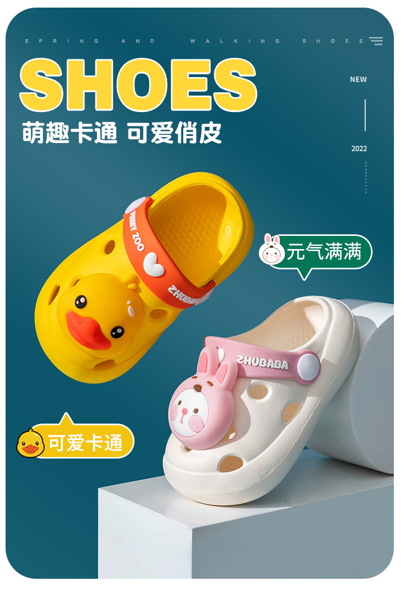 夏季儿童凉拖鞋小孩卡通包头防滑软底家居拖鞋宝宝洞洞鞋品质舒适