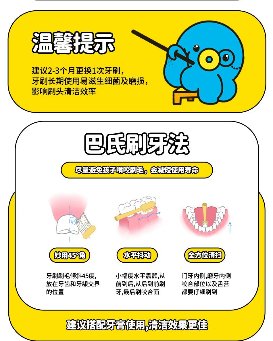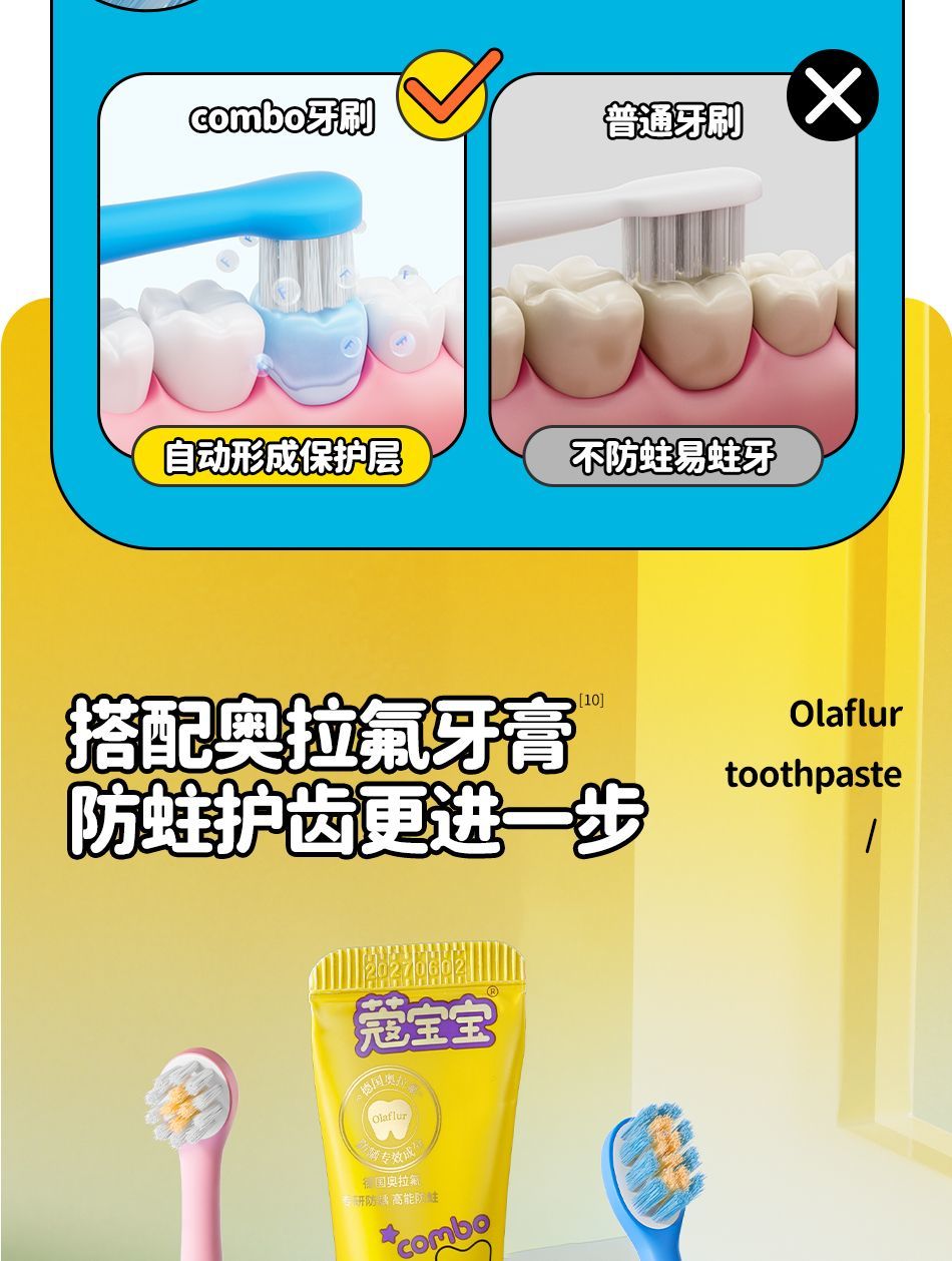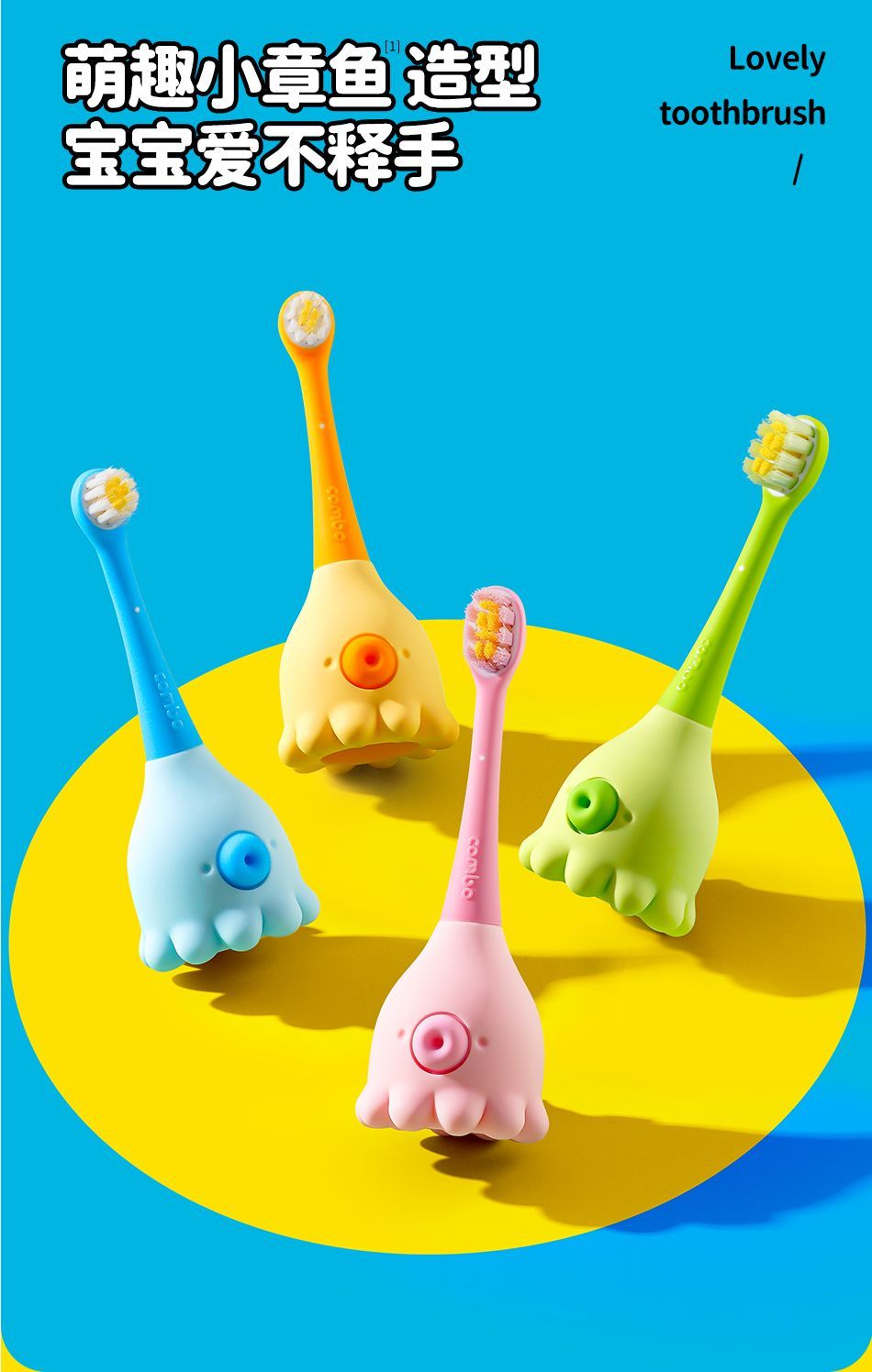 【含氟防蛀】combo小章鱼宝宝乳牙刷儿童软毛刷0-6岁幼儿专用护齿