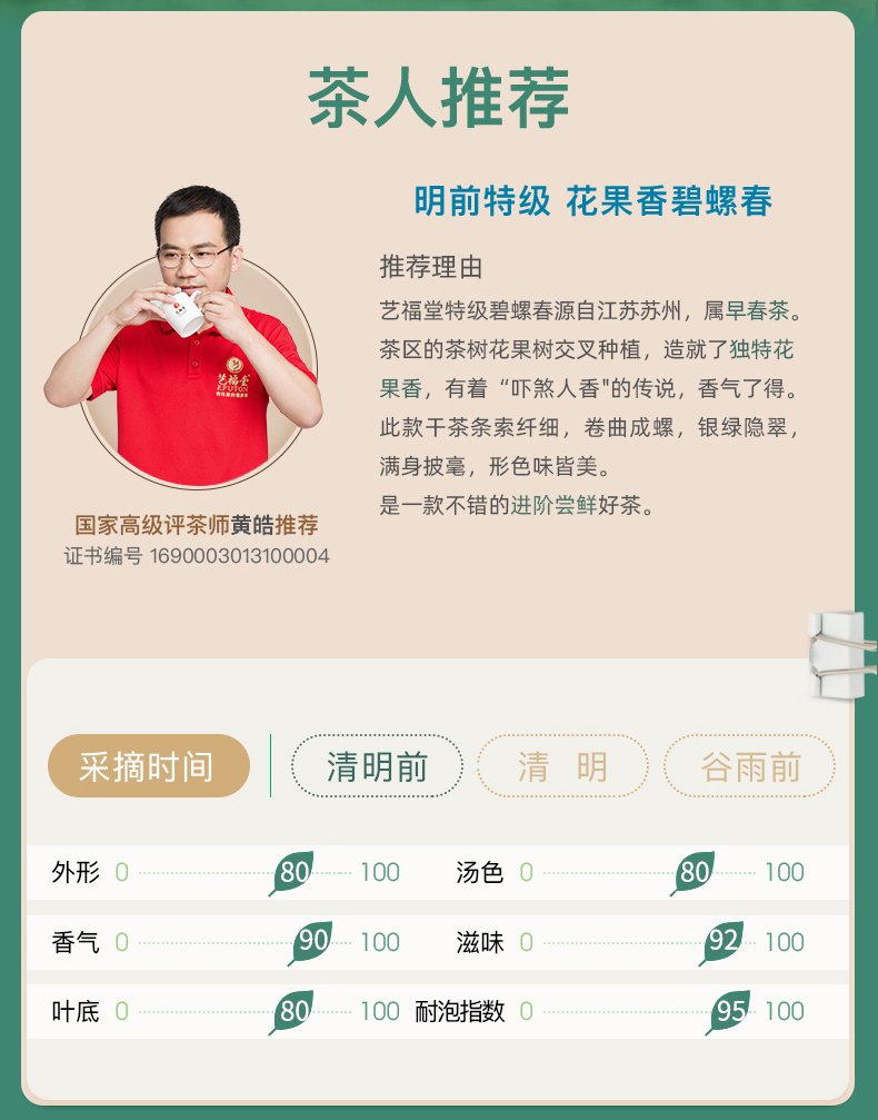 - “艺福堂茶业”创立于2008年,是一家集生产、销售、科研为一体的现代茶业企业,主打西湖龙井,兼营世界各地名优茗茶及花草茶,是中国茶行业为数不多的年销售额过5亿的品牌之一,是杭州亚运会官方指定用茶!