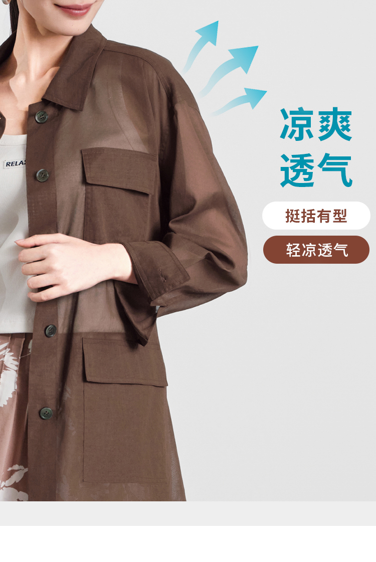 【商场同款】CNJ5580 “ 轻薄棕色衬衫外套 ” 舒适干爽 夏季空调衫 纯棉工装风外套