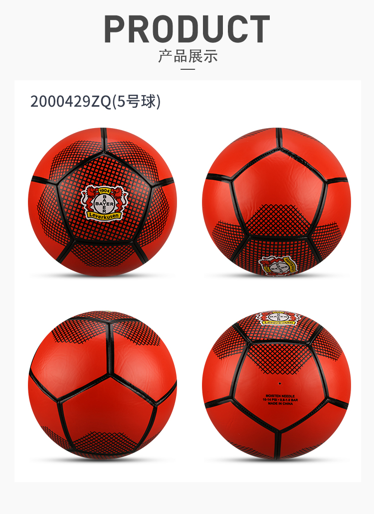 小李子JAKO/勒沃库森训练比赛5号机缝成人红色足球男子2000429ZQ