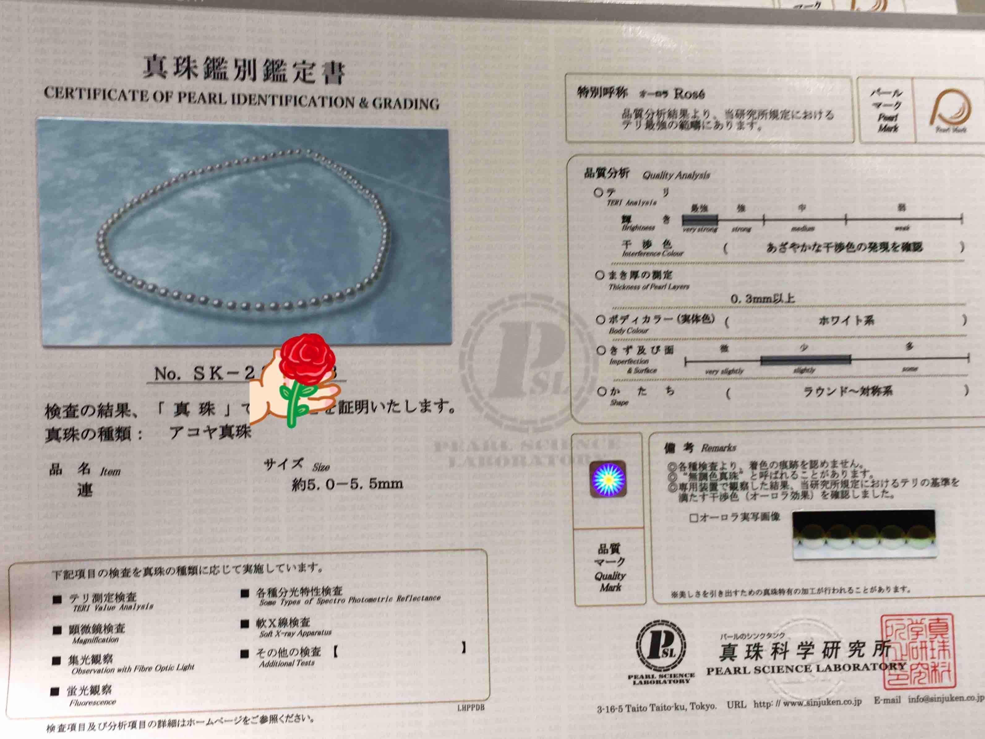 【私席真珠·新年盛宴】极光小灯泡5-5.5mmAkoya珍珠项链 ,近圆,有小小酒窝,珠光亮,链长约43cm,配18k金延长扣(带真科研Rose大证书)