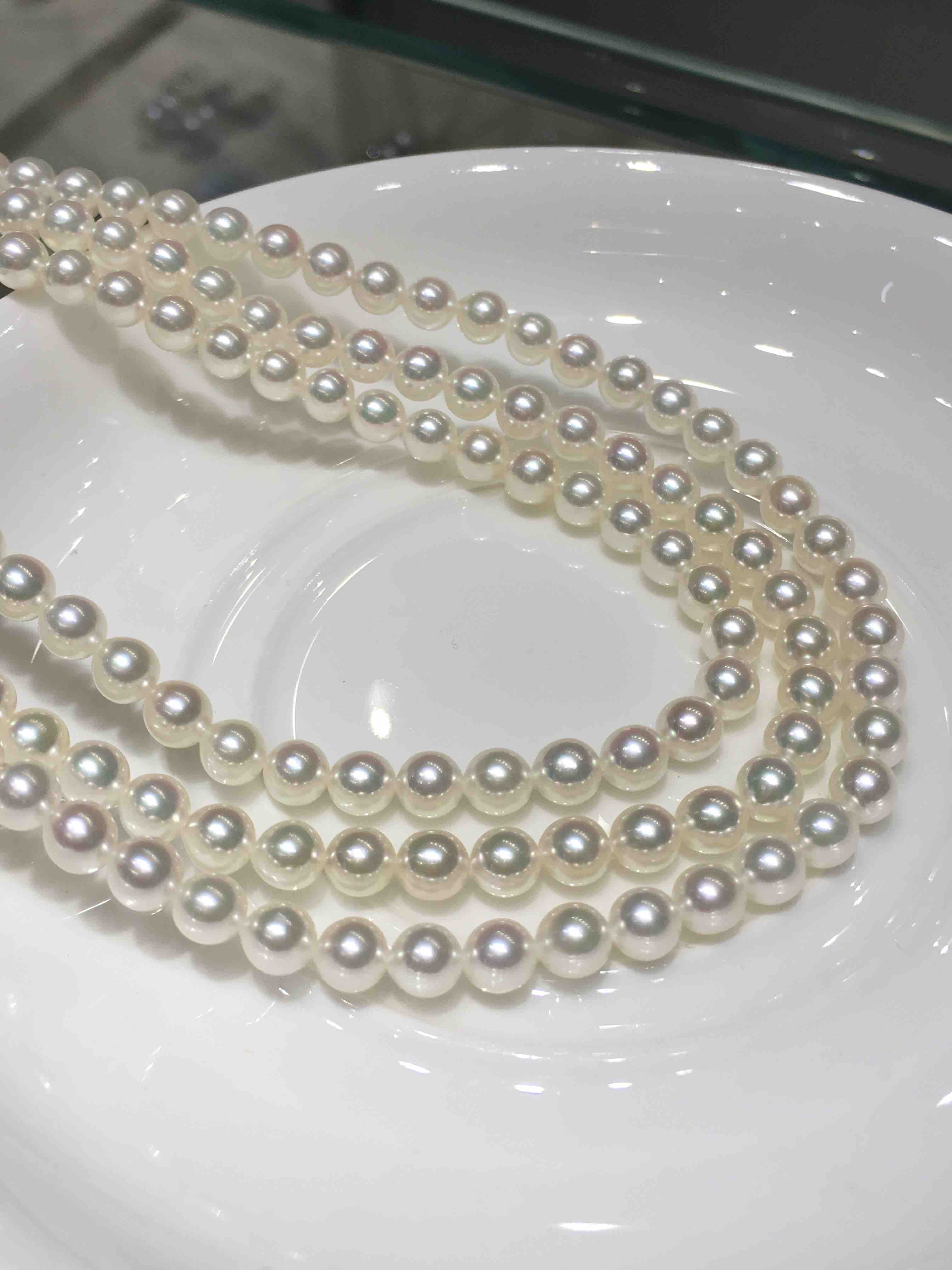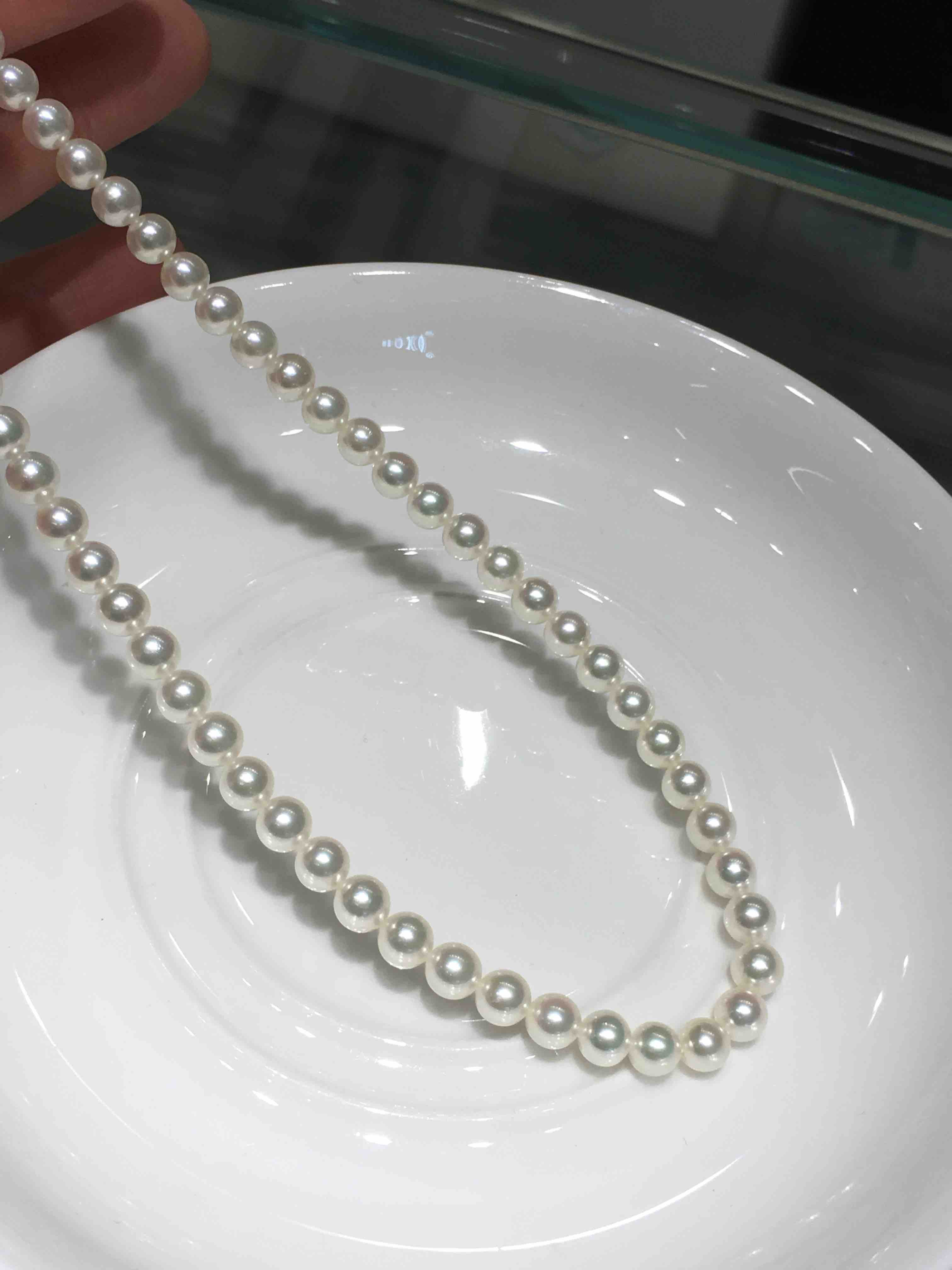 Akoya珍珠项链 ,近圆,有小小酒窝,珠光亮,链长约43cm,配18k金延长扣
