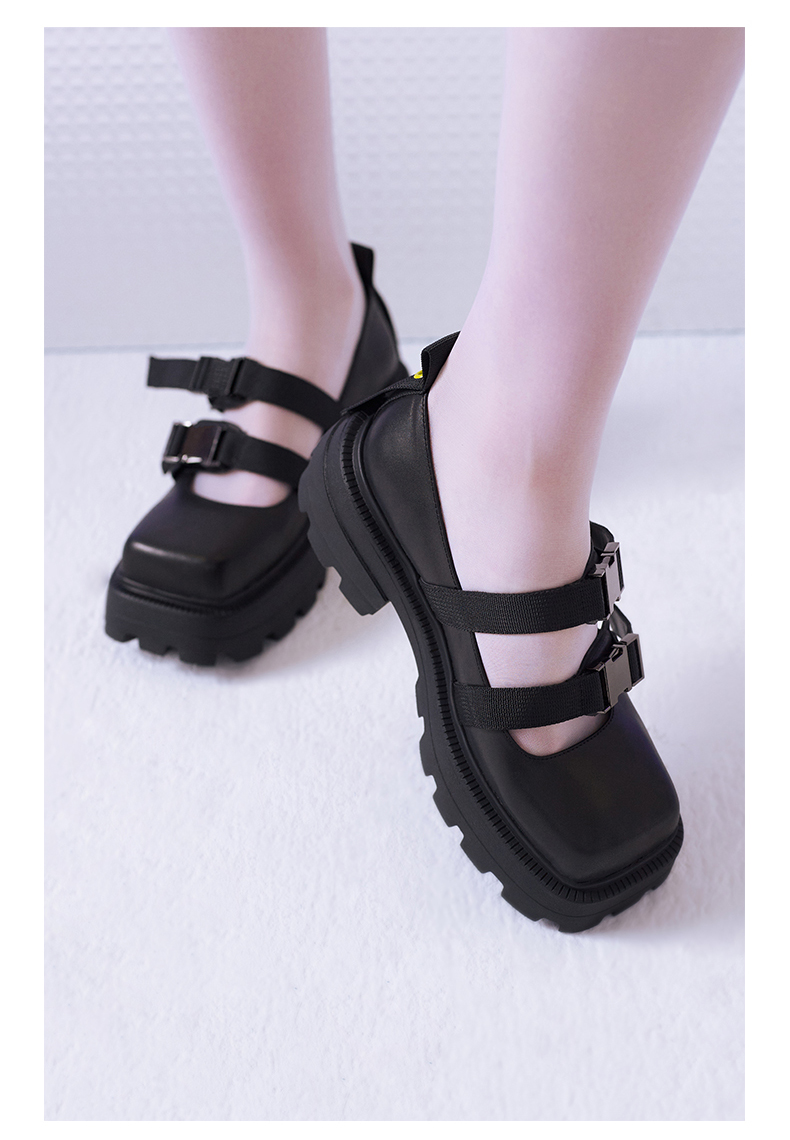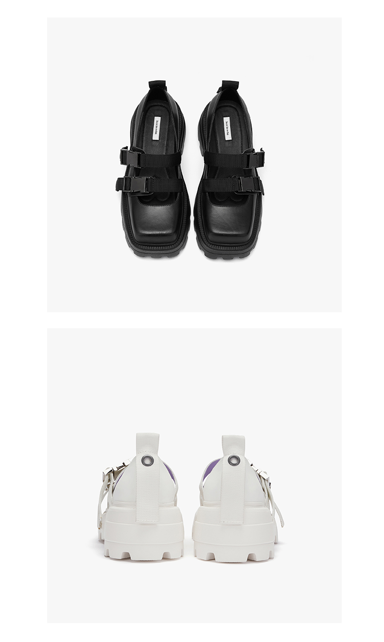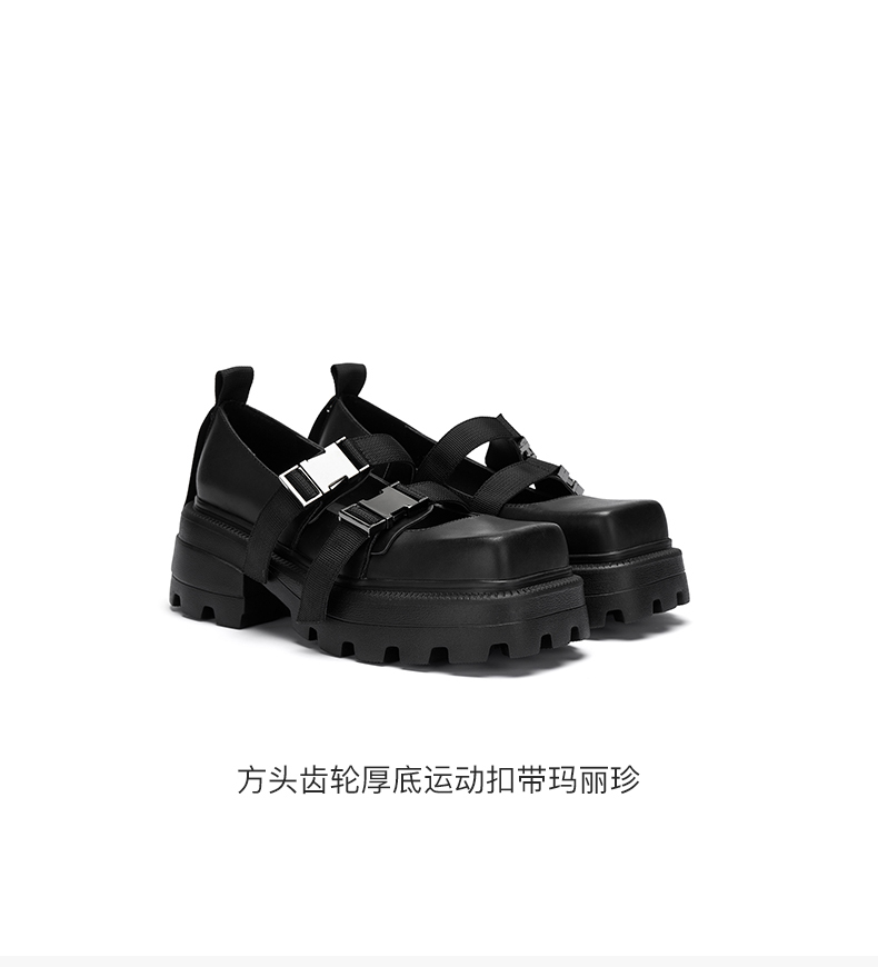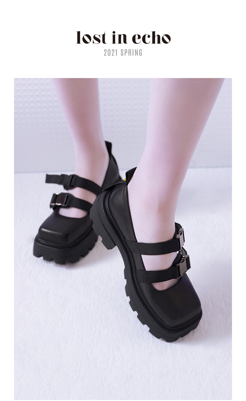 【下架】lost in echo 原创设计师品牌 方头齿轮厚底运动扣带纯色玛丽珍