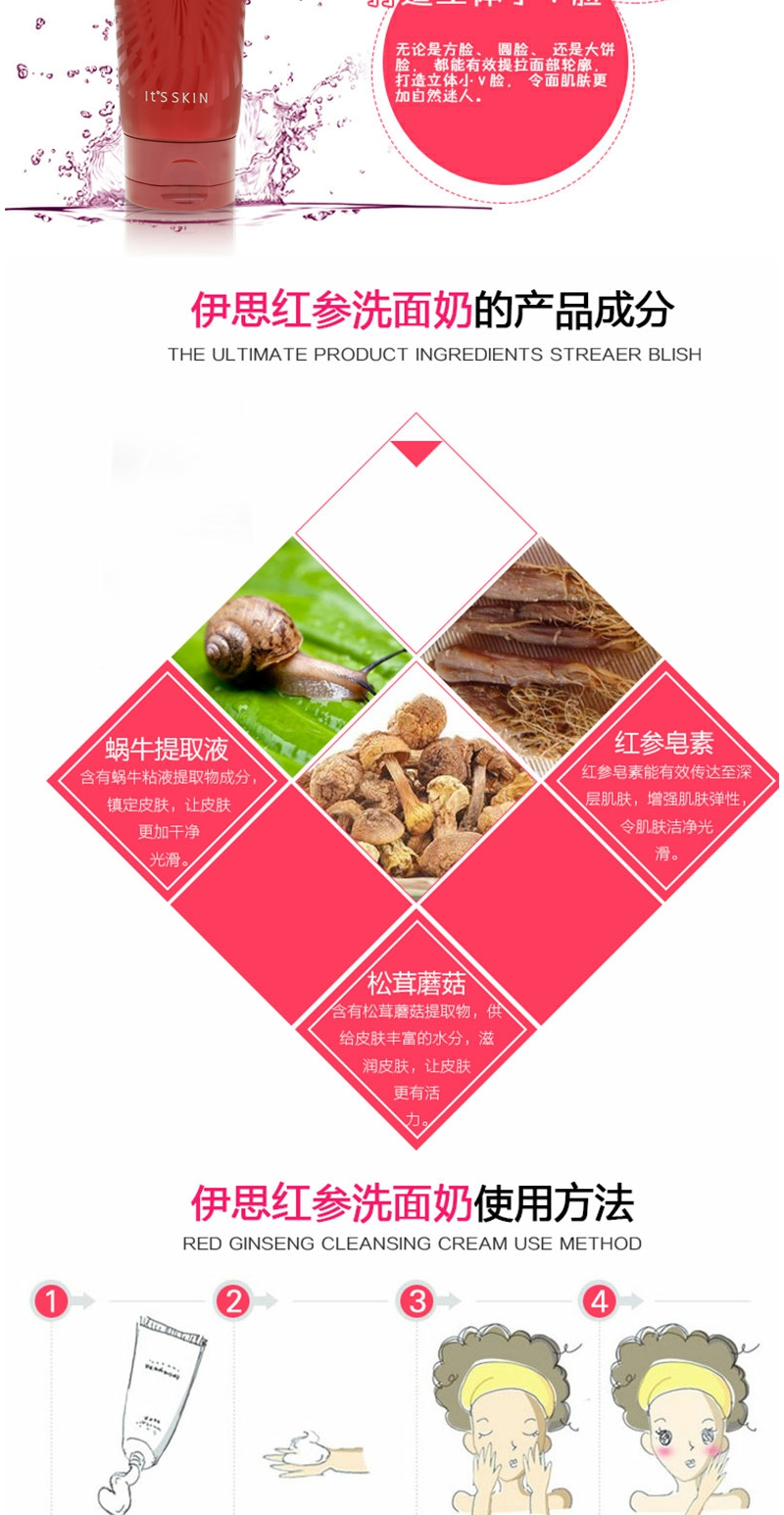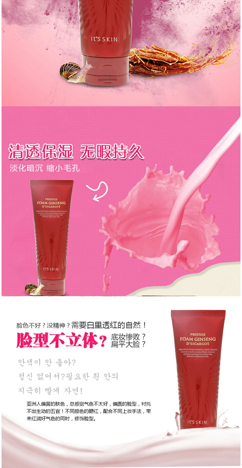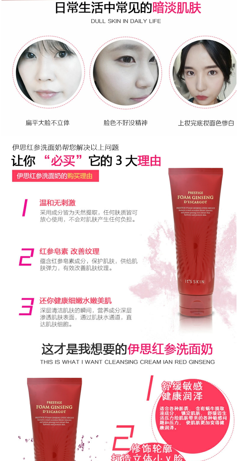 【YZ】韩国It`s skin伊思红参晶钻蜗牛洗面奶控油淡斑控油深层洁面150ml