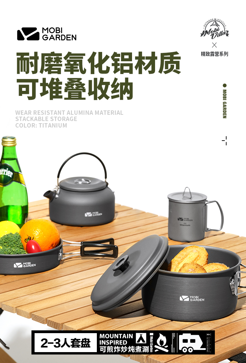 牧高笛(MOBIGARDEN)户外餐具便携式极宴2-3人套锅 NX21666046