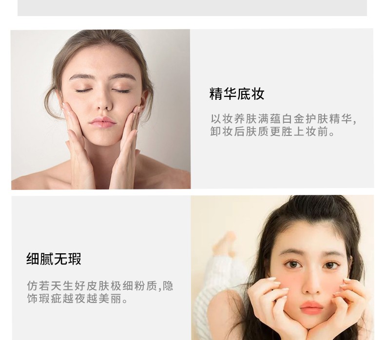 水粉底质地非常轻薄但是水润感十足,易推开,具有一定的流动性。适合偏干肤质使用,基本不卡纹
